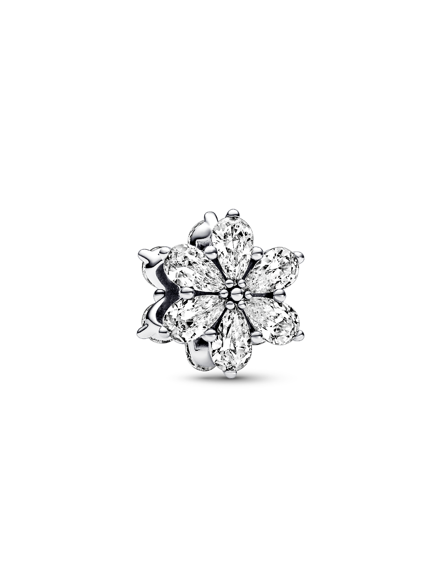 Take inspiration from the beautiful shapes of nature with the Sparkling Herbarium Cluster Charm. Inspired by pressed flowers and leaves, this hand-finished charm features a cluster of pear-shaped clear cubic zirconia stones on each side, creating an elegant, nature-inspired shape. A cluster of microbeads at the centre of the stones creates the finishing touch. Style it on your favorite bracelet or charm holder as an everlasting reminder of the beauty of nature.