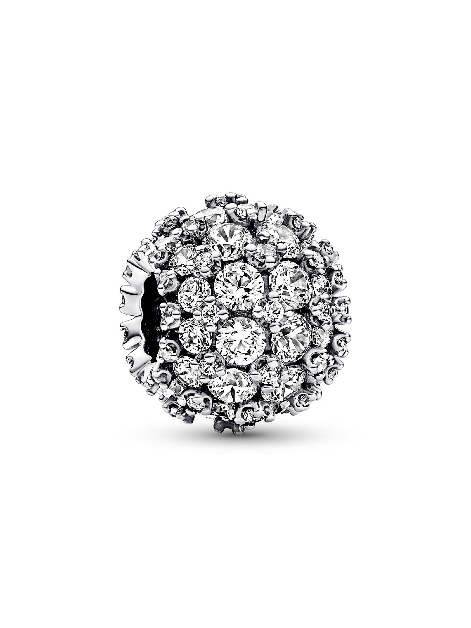 Add a touch of timeless sparkle to your look with the elegant and symbolic Sparkling Pavé Round Charm. This spherical sterling silver charm is set with a total of 88 clear cubic zirconia stones in different sizes, creating a voluminous geometric effect. 88 is a powerful number that represents progress, success and good fortune. It also resembles a double infinity symbol, representing the unlimited possibilities the future holds. Add it to your favorite jewelry styling or gift it to a loved one as a symbol of good things ahead.