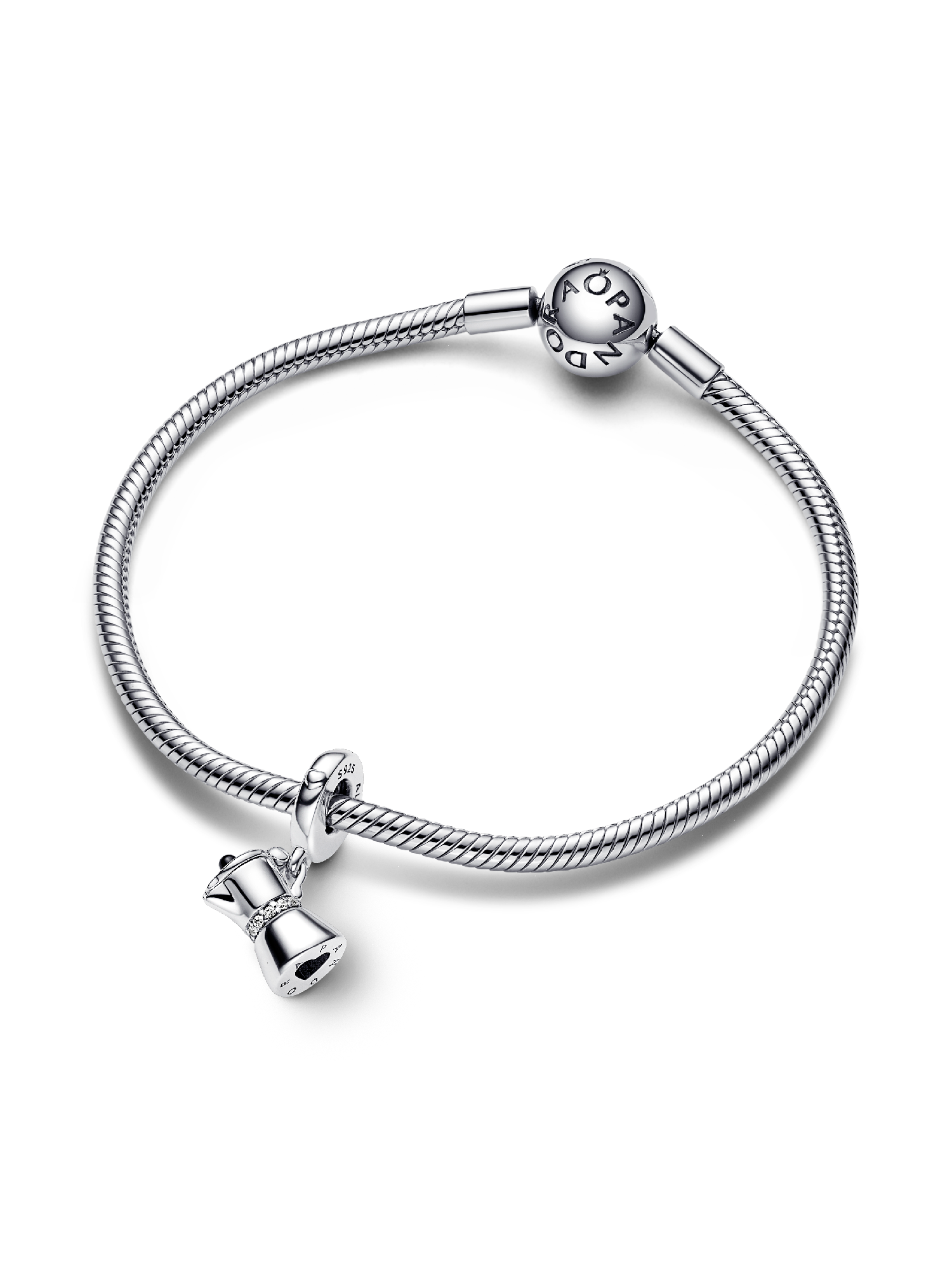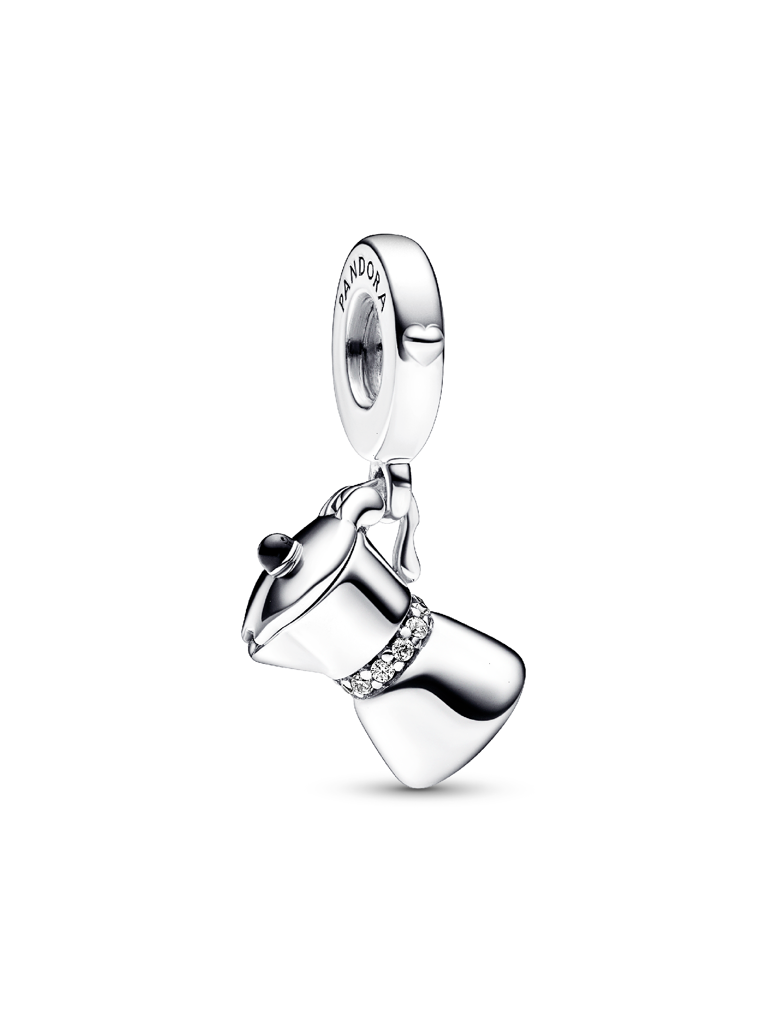 There's nothing like the smell of coffee in the morning... or any time! Bring the flavor of Italy to your styling with the Moka Pot Dangle Charm. This distinctive coffee pot has become an iconic part of Italian coffee culture. Our moka pot charm is crafted from sterling silver and features an openable lid with enamel detail, a band of pavé around the middle and a cut-out heart on the bottom. Pairs perfectly with your favorite charm holder and your morning brew.