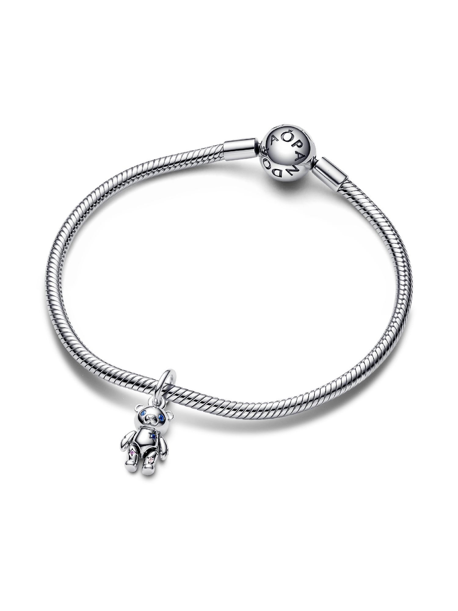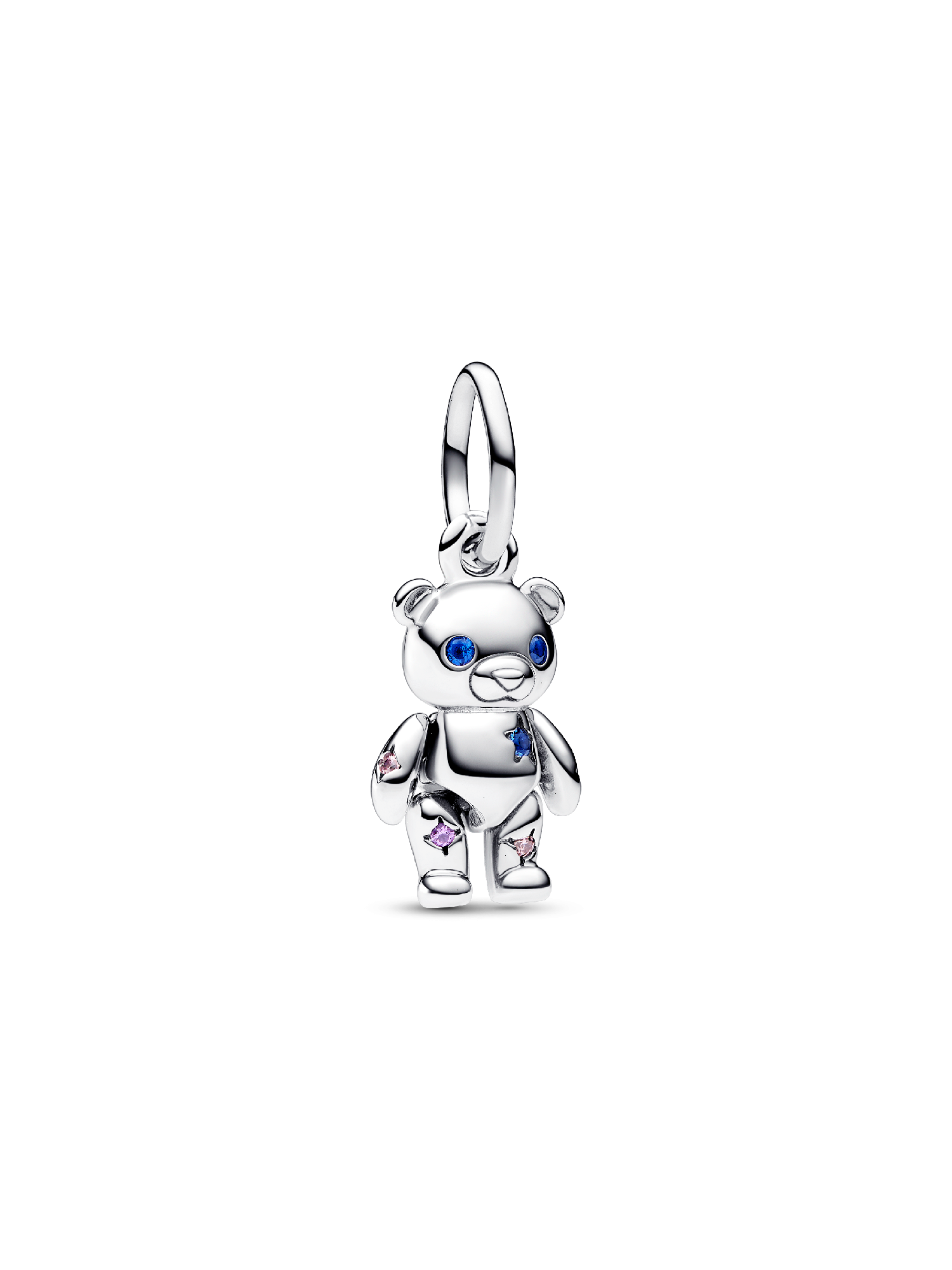 Our Movable Teddy Bear Dangle Charm is made of stardust and love. This extra-special teddy bear charm is crafted with stones set in star shapes, inspired by galaxies of shooting stars. With moveable arms and legs, this silver dangle charm serves as the perfect reminder that anything is possible. Featuring a blue man-made crystal set in a star to represent its heart, this teddy makes for an extra special addition to your most-loved charms.