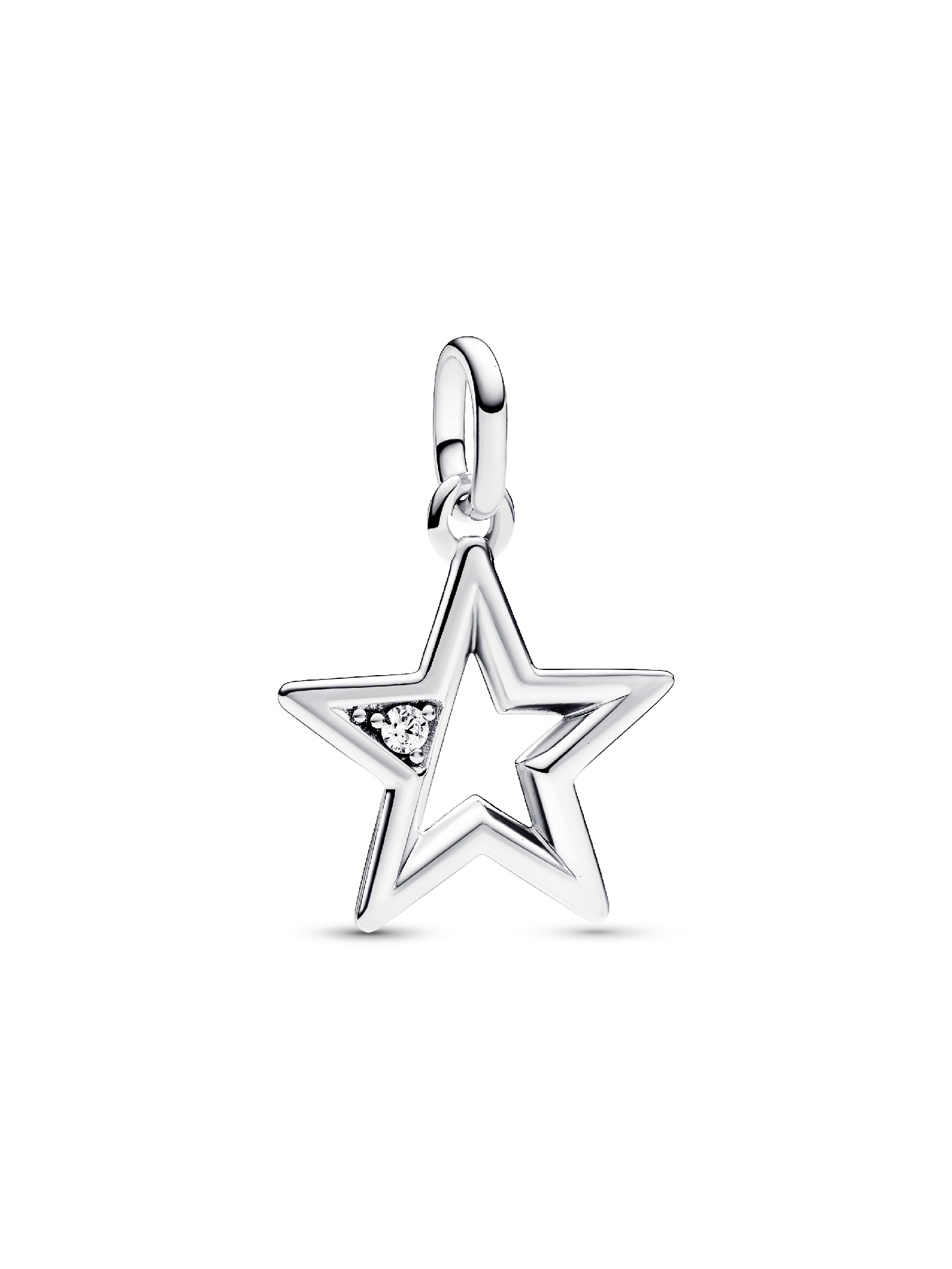 The stars are always aligned when you wear the Pandora ME Sparkling Star Medallion Charm. With a prism-shaped profile, this sterling silver star charm includes a sparkling stone hand-set in one of its five points. The reverse side features microbeads, a raised line and a triangle-shaped hole in the setting through which the stone is visible. Gift this medallion charm to someone who puts stars in your eyes, or wear it as a reminder that you're the star of your universe. Compatible with Pandora ME and Pandora Moments.
