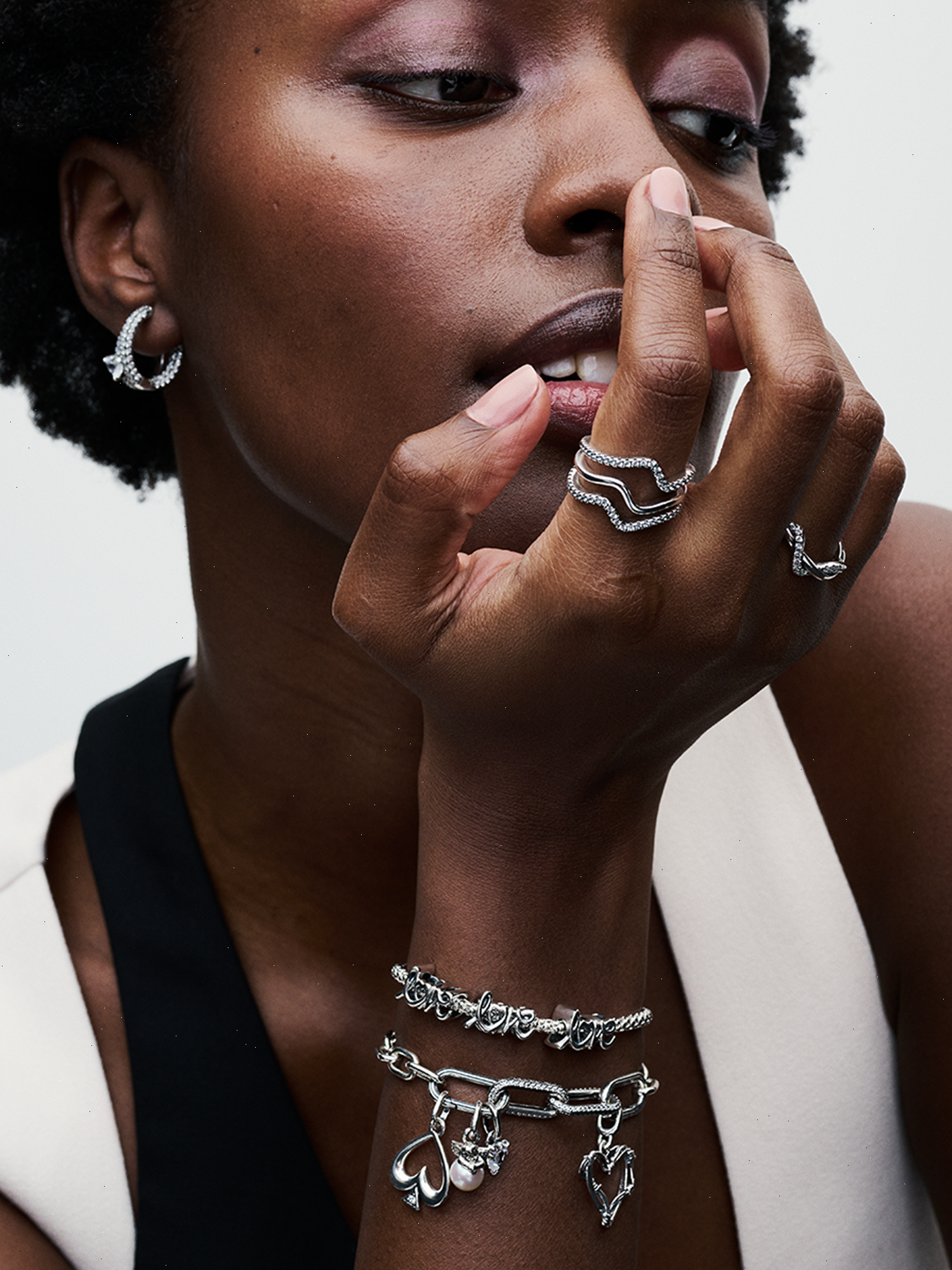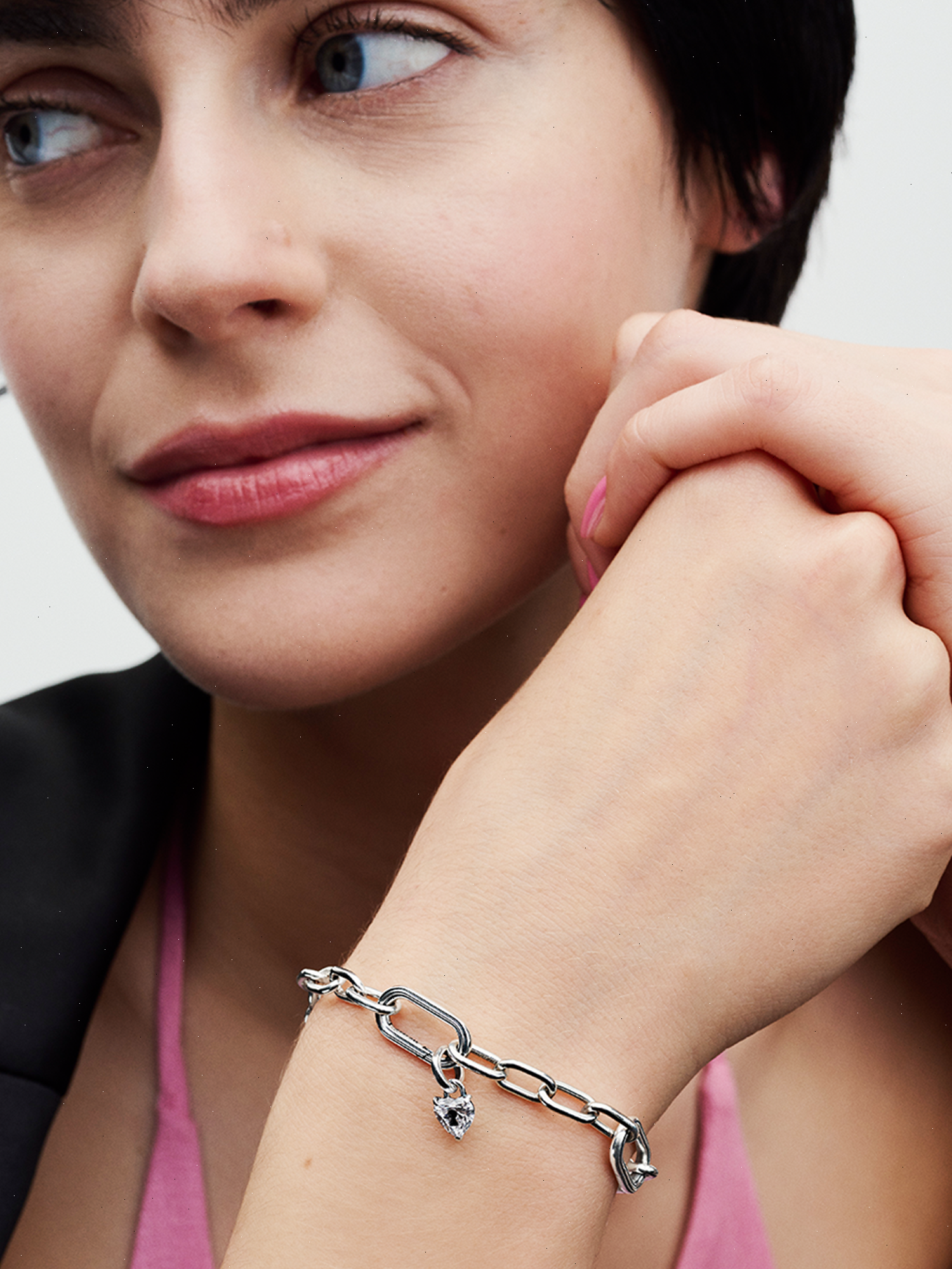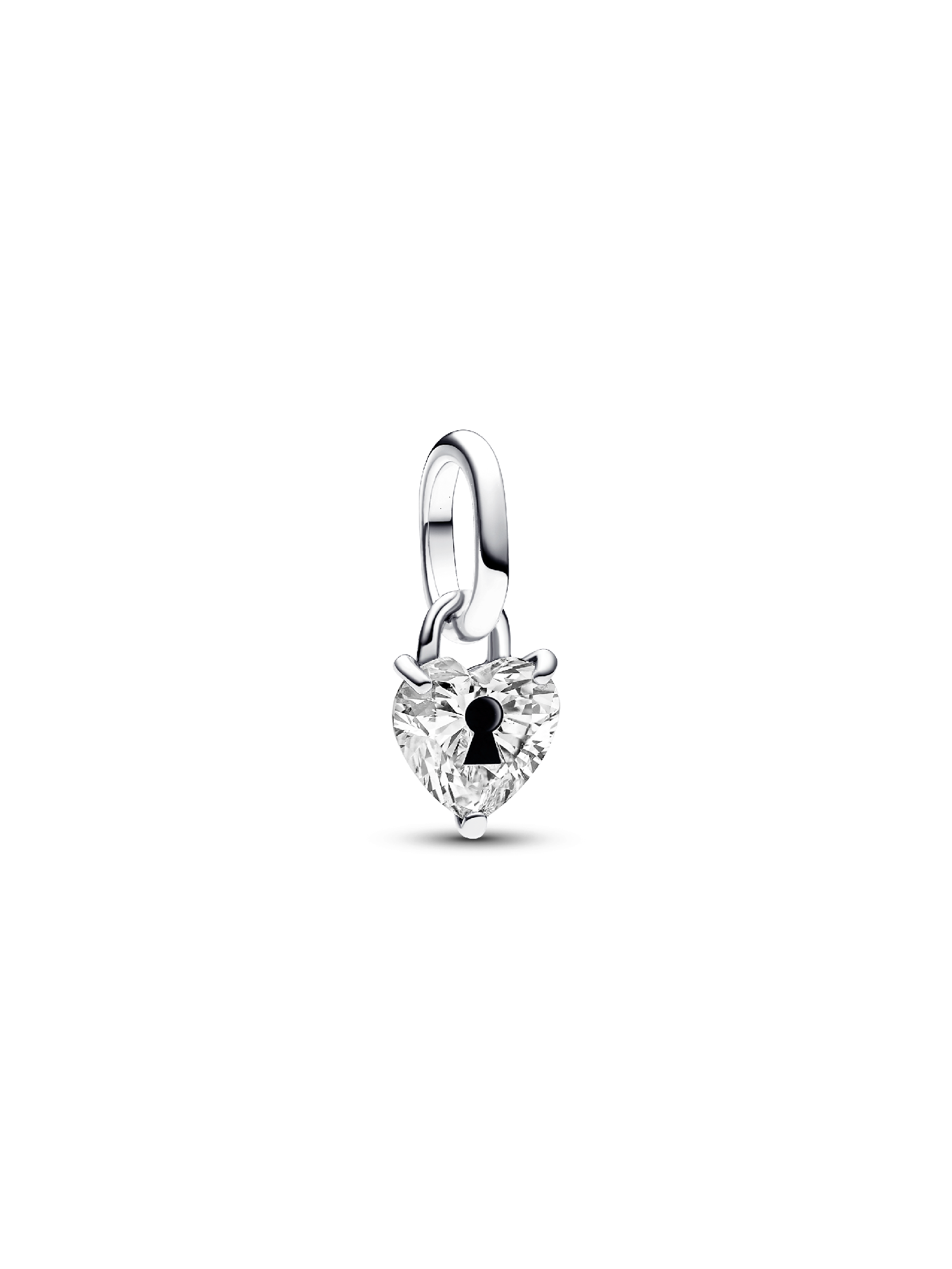Find your match with the Pandora ME Keyhole Heart Mini Dangle Charm. This sterling silver charm features a heart-shaped clear cubic zirconia stone with a keyhole motif in black enamel, inspired by the symbolism of tattoo art. Behind the stone is a heart-shaped cut-out to let the light shine through. Pair it with the Pandora ME Key Mini Dangle Charm to symbolise those relationships that just "click", or wear one yourself and gift one to the person who's a perfect match. This mini dangle charm can be styled on Pandora Moments charm holders and openable links on Pandora ME carriers.