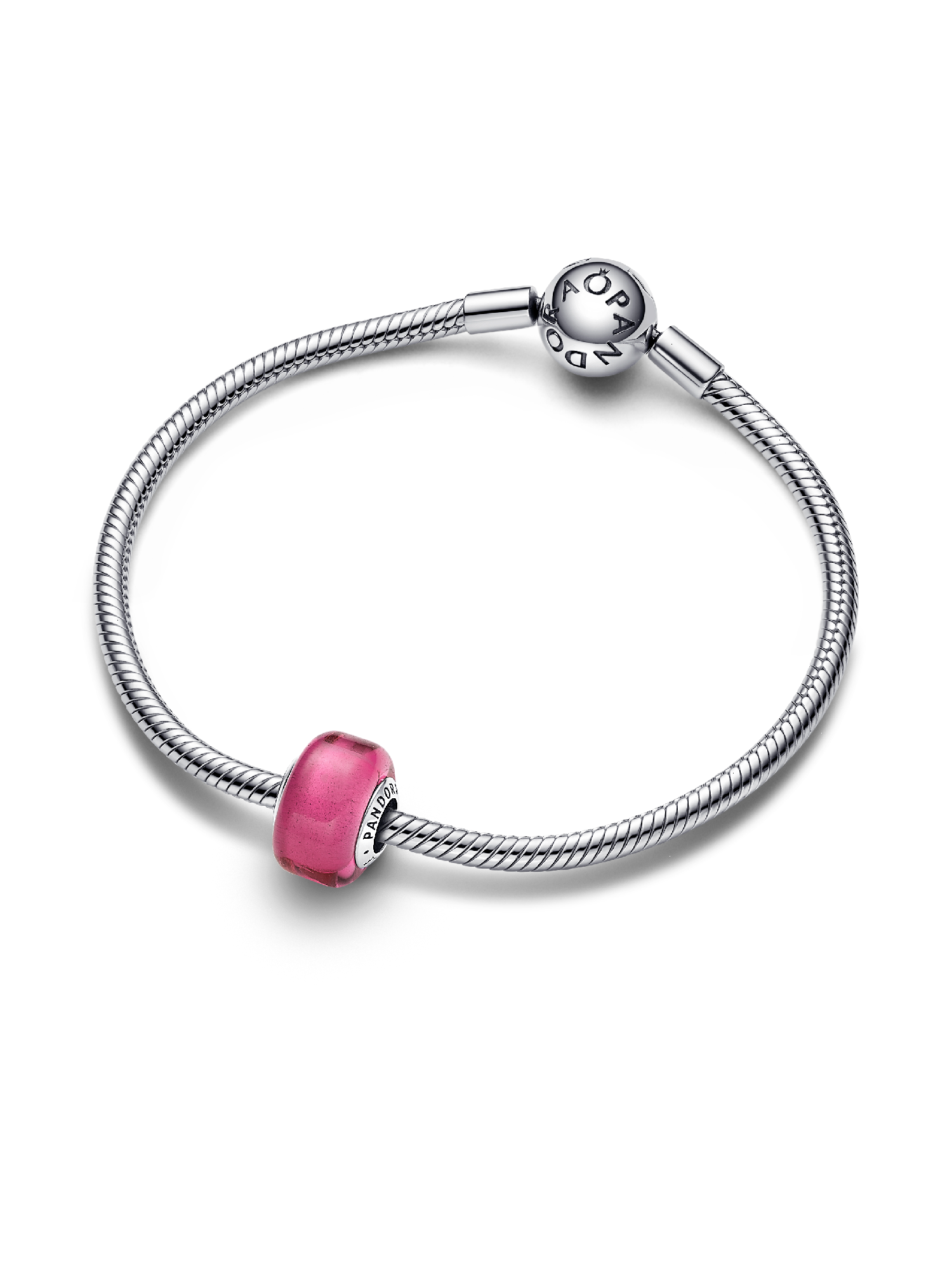 Add a splash of color to your charm styling with our Pink Mini Murano Glass Charm. This new charm design has a smaller size than our other Murano charms and a slightly squared shape, creating new ways to play with color and dimension in your charm line-ups. The core is made from sterling silver and fits on any Pandora Moments charm holder. Pair it with your favorite sterling silver charms or get creative and mix with the same style in other colors.
