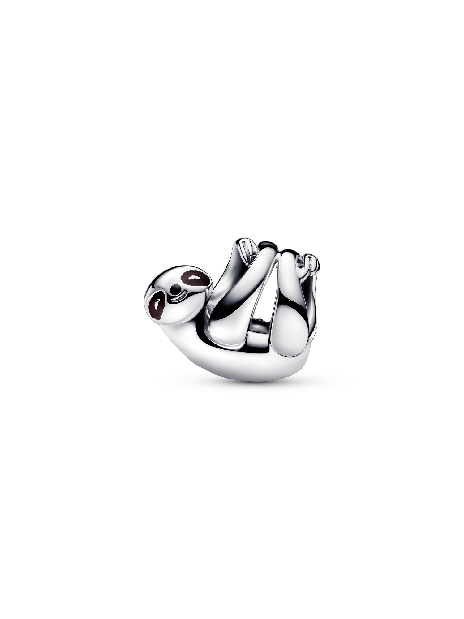 Celebrate a sweet and soulful animal with the Hanging Sloth Charm. A sterling silver sloth is curled up as if hanging from a branch, its head leaning to one side with colorful enamel details and grooved lines adding to the realistic look. On the sloth's back reads the engraved message: "Good things take time." Pair this charm with other animal-inspired designs to honor the many different personalities in the animal kingdom, including the sloth's relaxed and slow-moving nature.