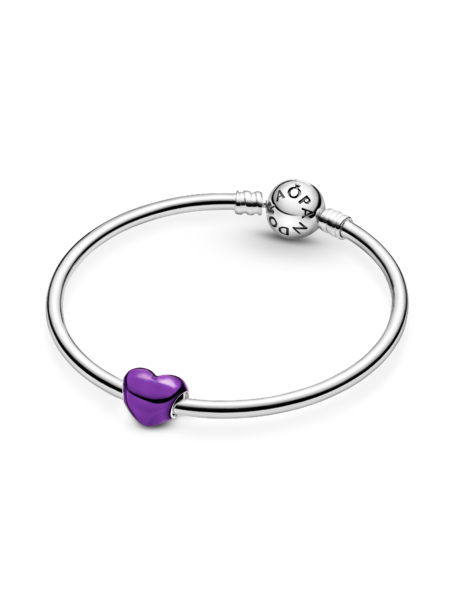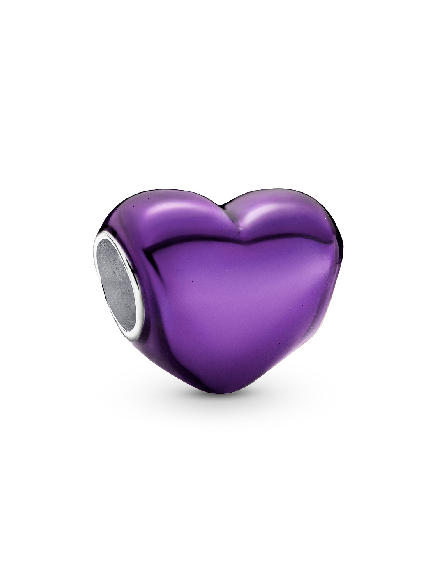 Make your style pop with the Metallic Purple Heart Charm. Hand-finished in sterling silver, this heart-shaped piece is decorated with hand-applied transparent purple enamel so that the base shines through. The perfect balance between opaque and translucent, allow this reflective design to stand out by teaming it with minimal charms on your Pandora Moments bracelet. Alternatively, wear with other colorful pieces for a vibrant finish.