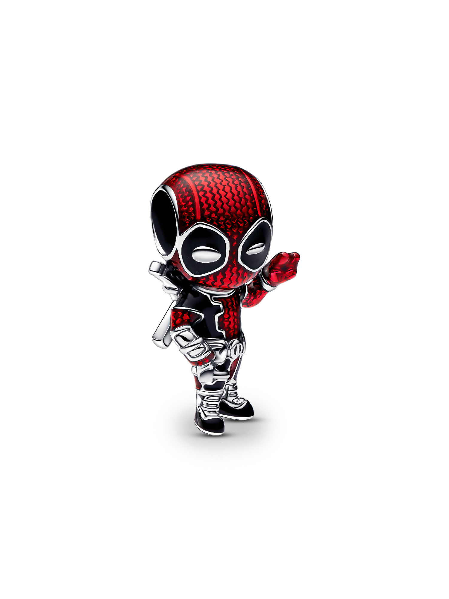 Pay tribute to a brave and goofy character with the Marvel Deadpool Charm. Marvel's Deadpool is depicted in sterling silver with metallic-effect enamel in basse-taille technique revealing a woven pattern beneath Deadpool's fully-equipped body suit. Intricate detailing brings this charm to life, showing Deadpool mid-action with one hand forming a peace sign. No Marvel fan's collection is complete without this charm that celebrates the goofy and brave-hearted Deadpool character.