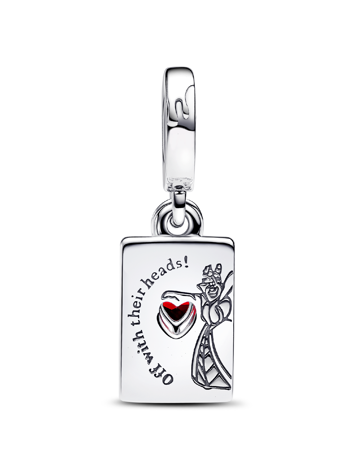 Paint the world red with our charm inspired by Disney's Alice in Wonderland's villainous queen. Set in cool sterling silver with hand-applied enamel details, the charm also features a red man-made crystal heart and the engraved message "Off with their heads." It's a royally wicked way to add a touch of darkness to your Disney collection.
