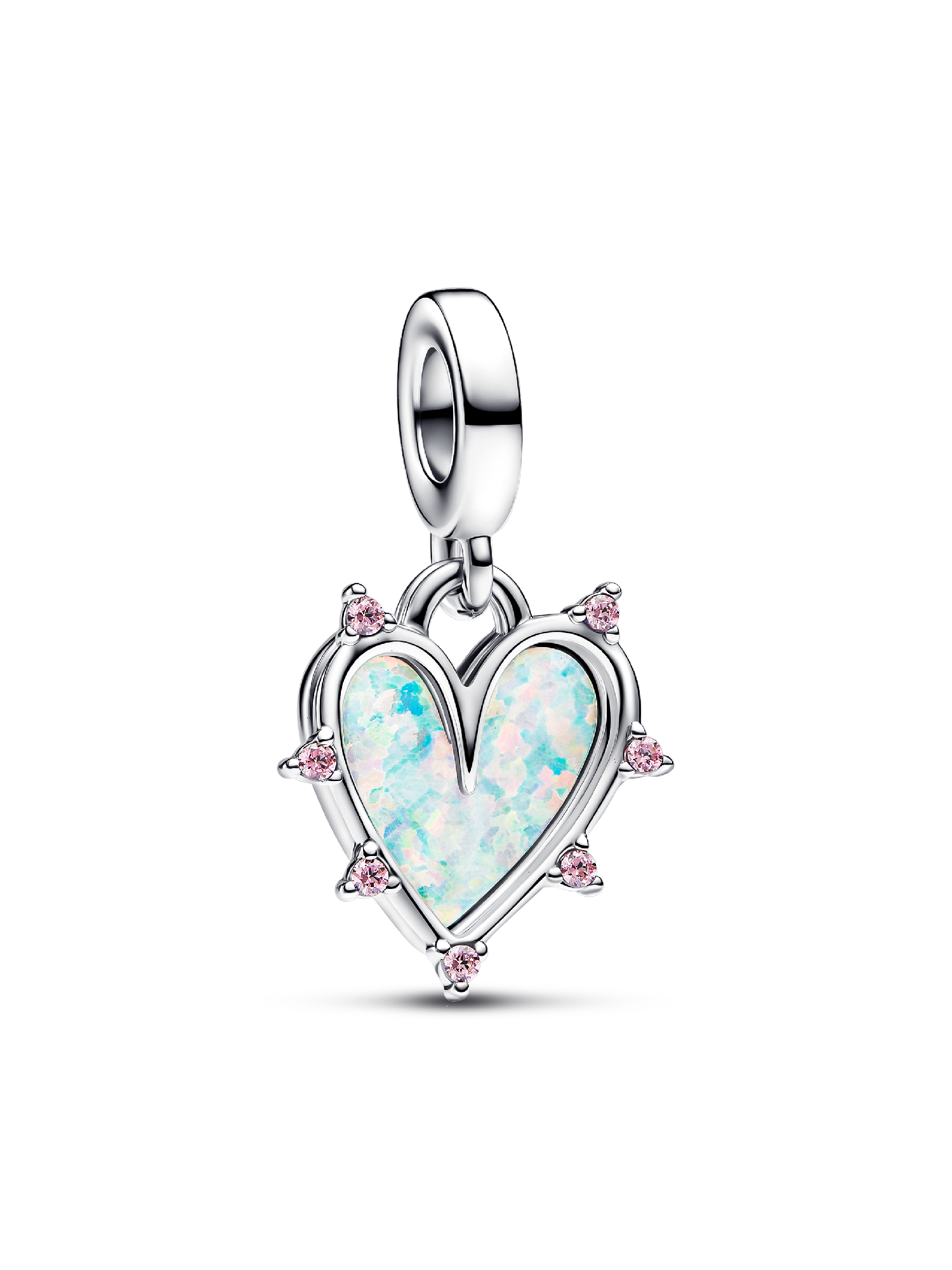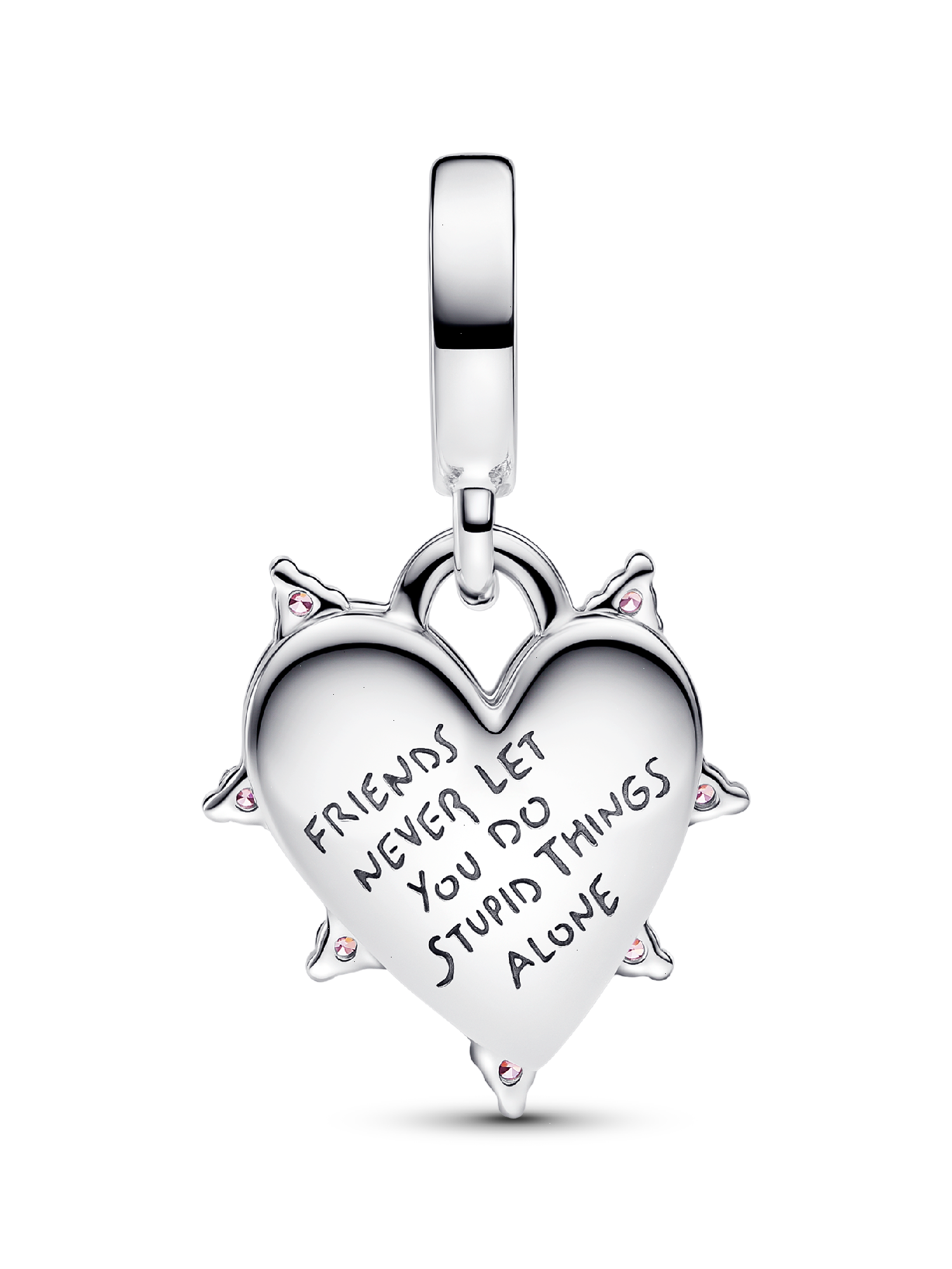 Celebrate your forever friends with our sterling silver double dangle charm, featuring sparkling stones and a pink lab-created opal. ""FRIENDS NEVER LET YOU DO STUPID THINGS ALONE" is engraved on the back of the solid charm, the perfect tribute to the ones who are by your side through it all.