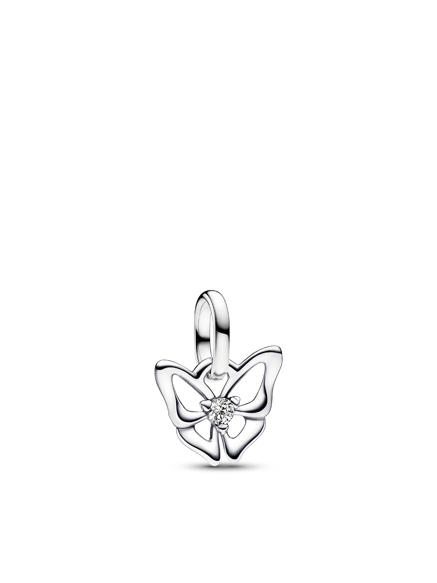 Our Butterfly Mini Dangle Charm serves as a reminder that you're always free to be yourself. Sterling silver openwork wings are offset with a sparkling round brilliant-cut stone at the center of the butterfly. Carry this icon of freedom as a symbol of your independent spirit.
