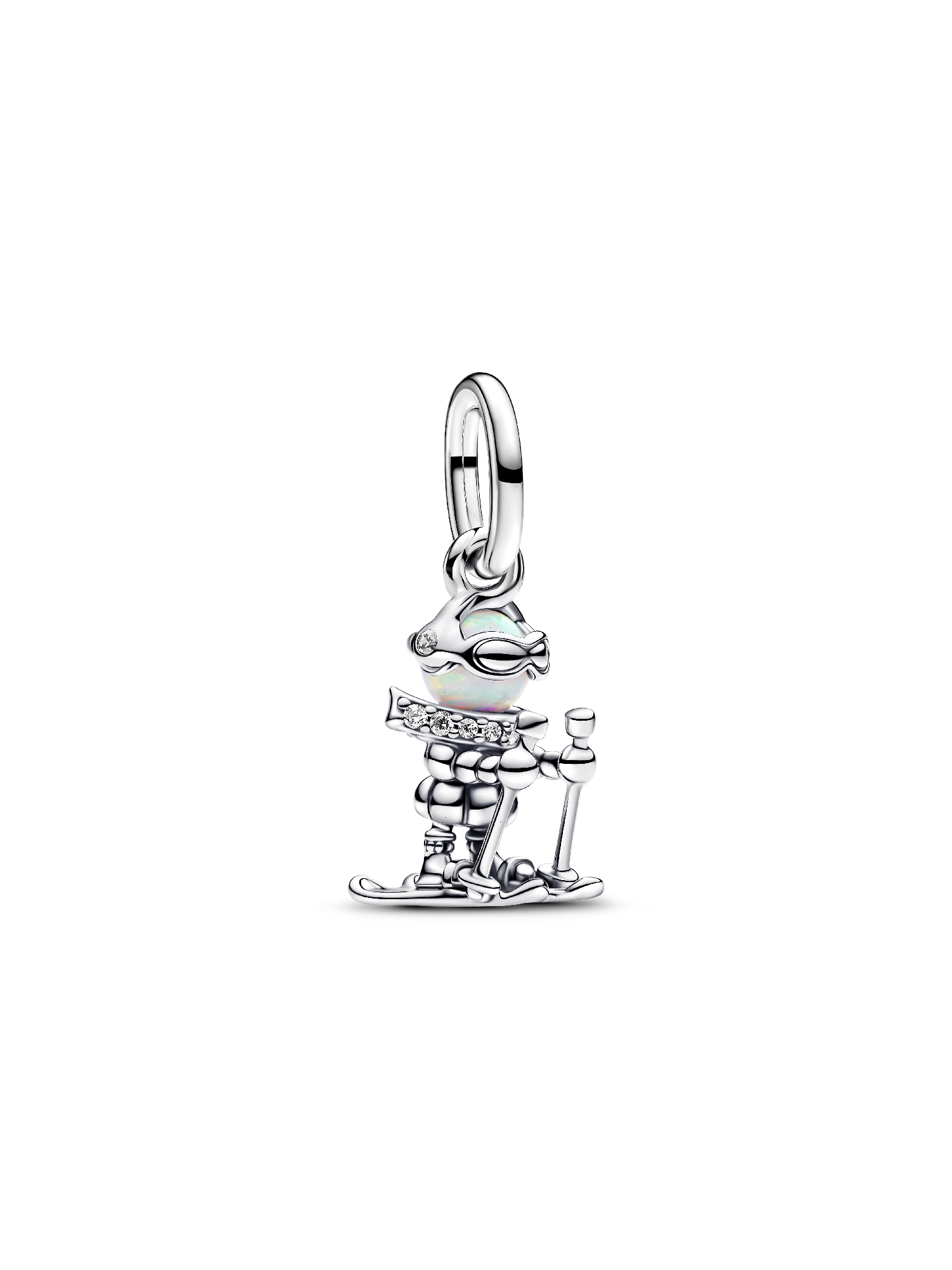 Make every day a winter wonderland with our Skier Dangle Charm. Crafted in sterling silver with sparkling stones and a lab-created opal head, our skier is complete with a full ski outfit, goggles and poles, ready for the slopes and all the fun the season brings.