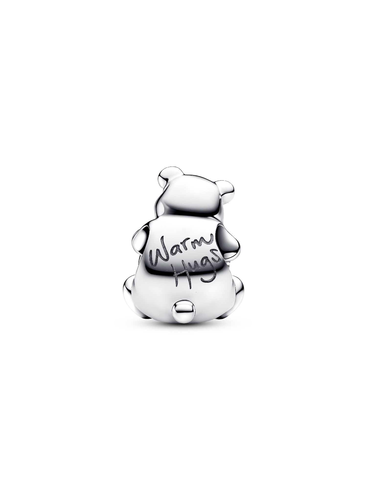 Give a warm embrace to the chilliest season with our Polar Bear Charm. A sterling silver polar bear, finished with enamel eyes, gives a big bear hug to a radiant lab-created opal resembling a snow ball. The back of the bear is engraved with "Warm Hugs."