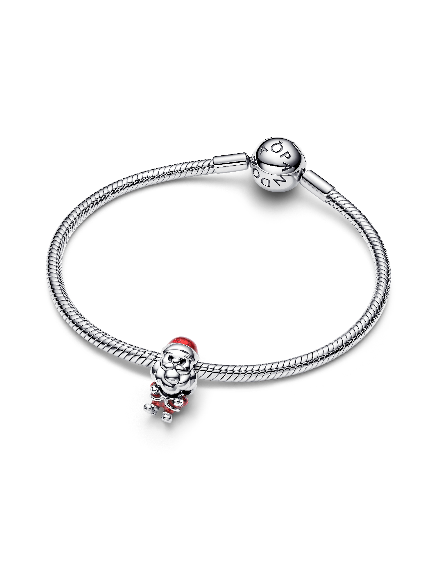 Our Playful Santa Charm makes the season merry. Crafted in sterling silver with glittery enamel on his iconic outfit and facial details, Santa's body can even move from side to side for an extra jolly effect. Celebrate your holidays in festive pieces that bring the season's joy to life.
