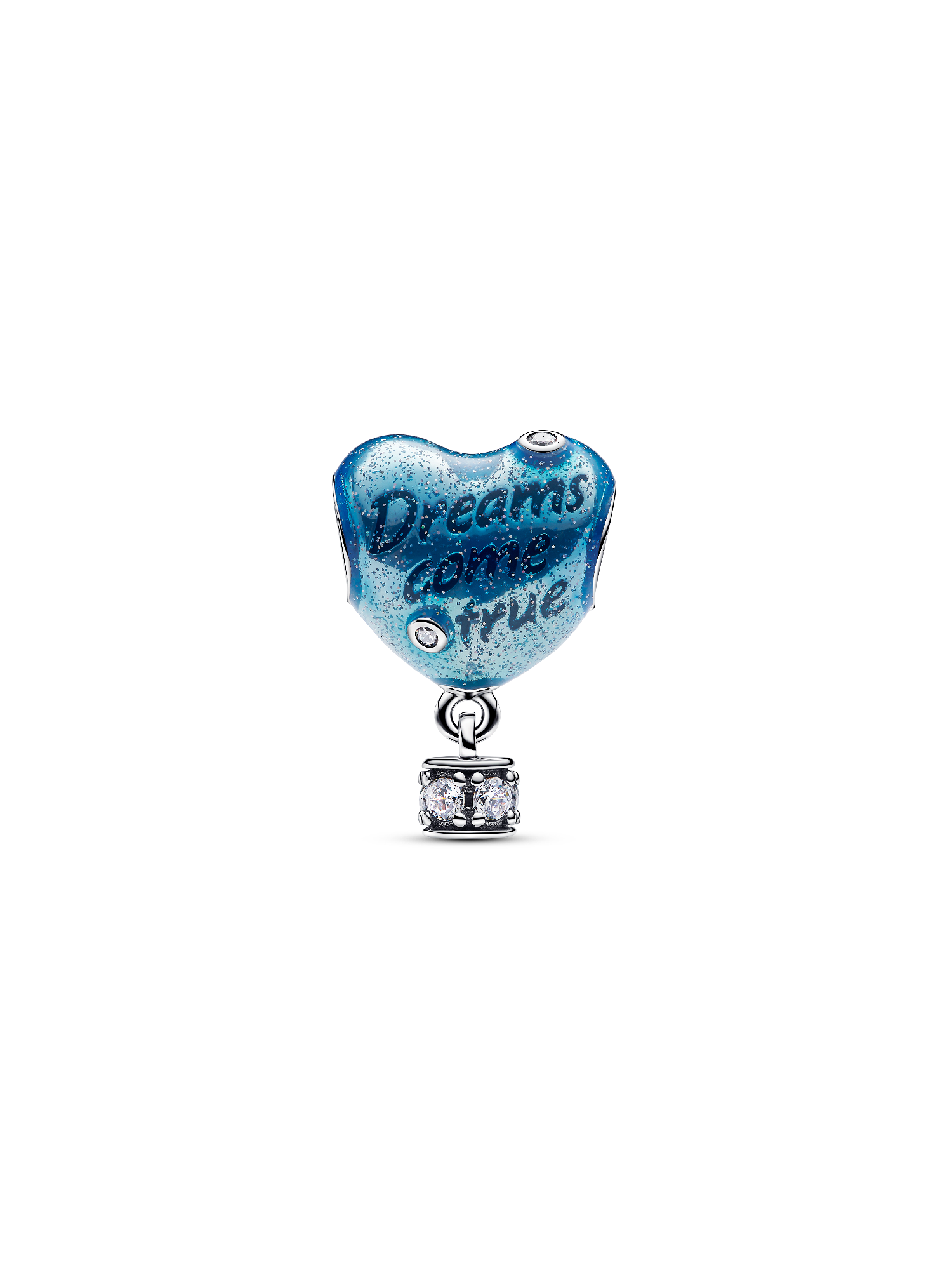 Keep your head and heart in the clouds with our Hot Air Balloon Heart Charm. Crafted in sterling silver with glittery blue enamel, this charm features the engraved message "Dreams come true" and a pavé-covered basket dangling from the base. Carry it as a reminder that the future belongs to those who keep dreaming.