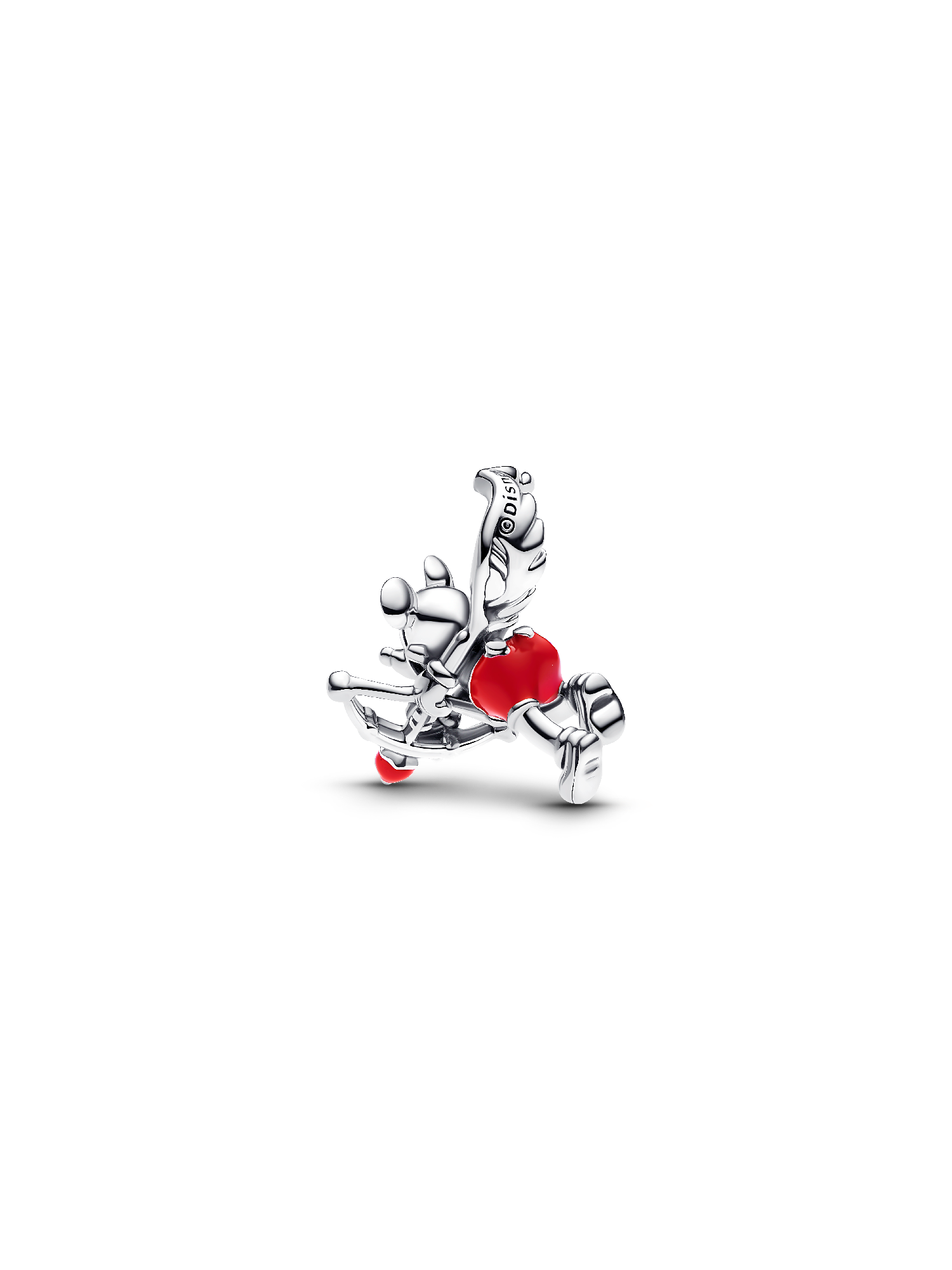 Love Disney's Mickey Mouse? There's a charm for that. Made from sterling silver, this romantic, playful design features vibrant red enamel on Disney's Mickey's signature shorts and the heart-shaped tip of his arrow. The bail is shaped as his wings, adding a whimsical touch, and the charm is engraved with the ©Disney logo. A unique opportunity to collect Disney's Mickey Mouse as cupid, this charm celebrates the joy of love and the magic of Disney.