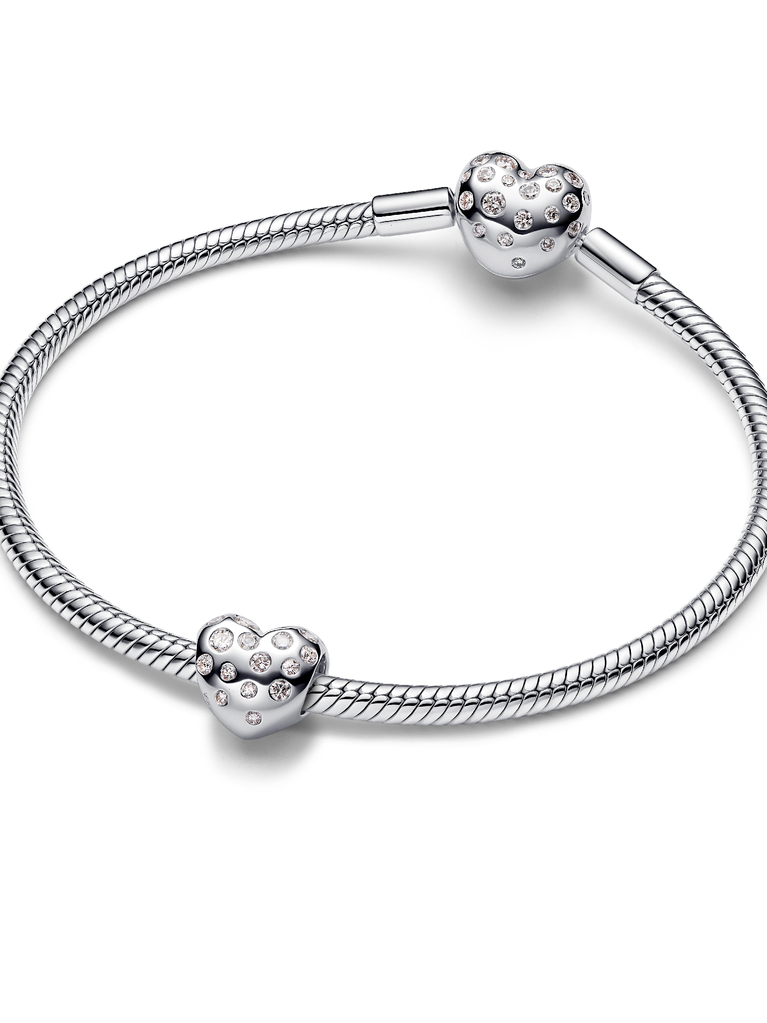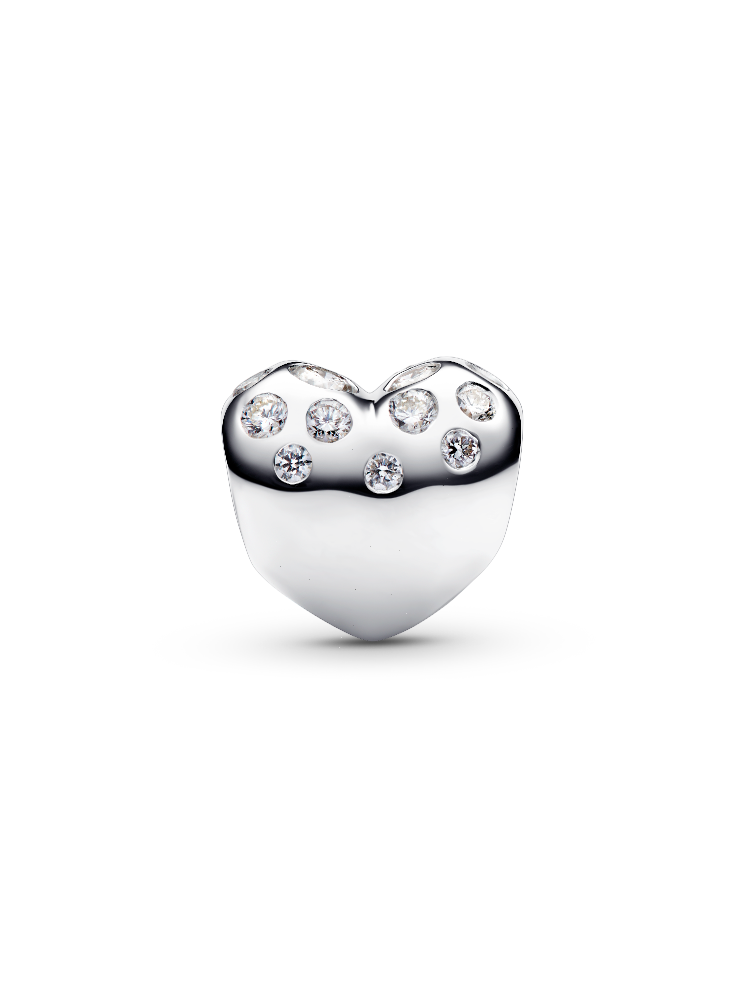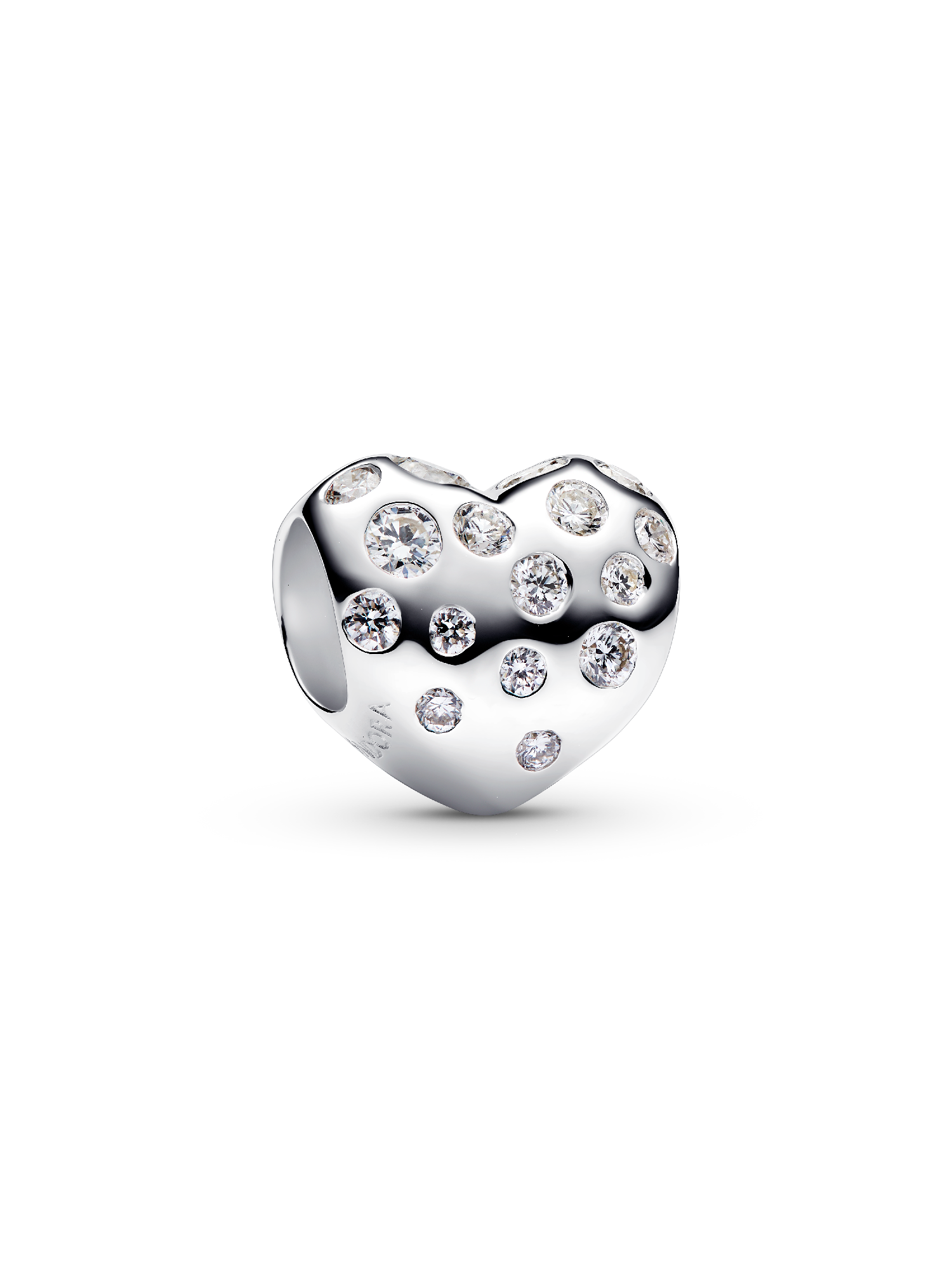 Radiate love with our Heart Charm. Crafted from sterling silver, this meaningful heart-shaped piece features 27 flush-set lab-grown diamonds of different shapes and sizes that scatter across its surface. All finished with a Pandora logo on the back of the charm. The sprinkle of lab-grown diamonds was inspired by shafts of morning light, new days and new beginnings. Wear yours as a precious symbol of all that you love and all that lies ahead of you. To ensure our rigorous standards of quality in color and clarity, each lab-grown diamond has undergone an additional high heat and pressure treatment prior to cutting and polishing.