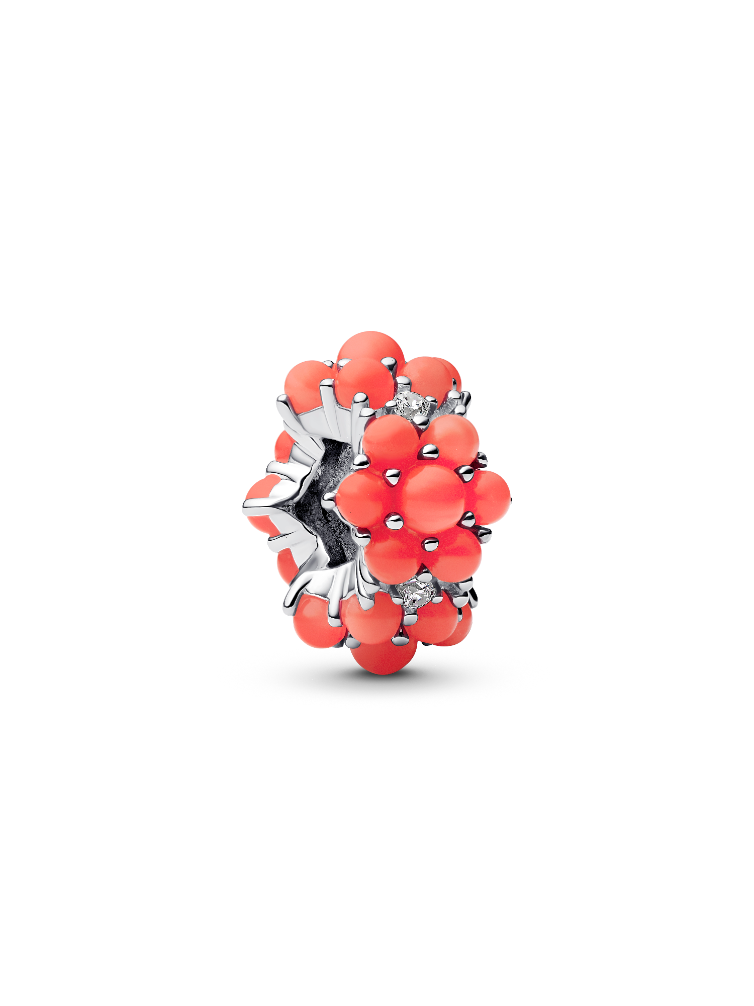 Celebrate the beauty of the ocean with a charm that shines like a summer sunset, featuring clusters of imitation coral and clear cubic zirconia.
