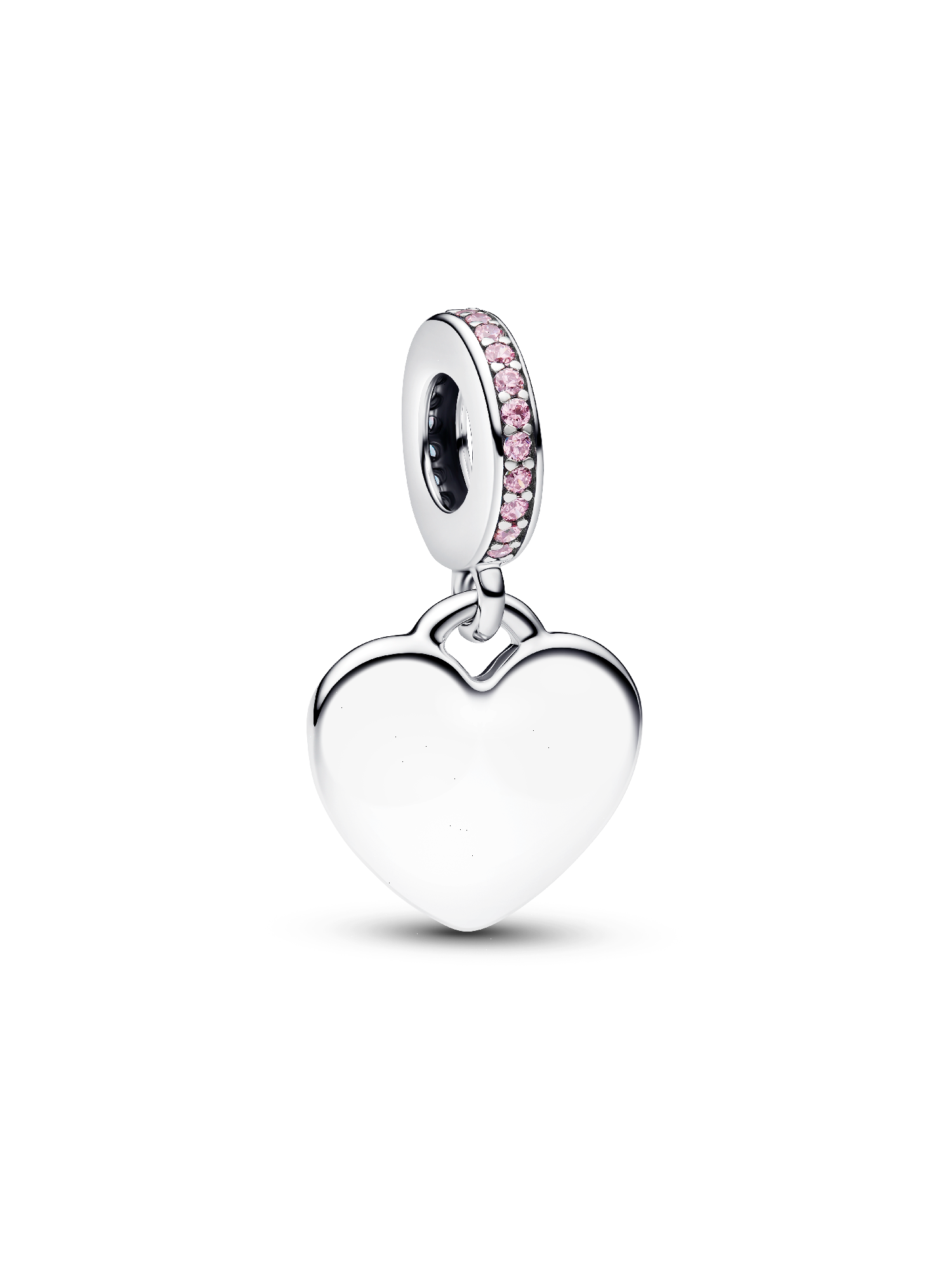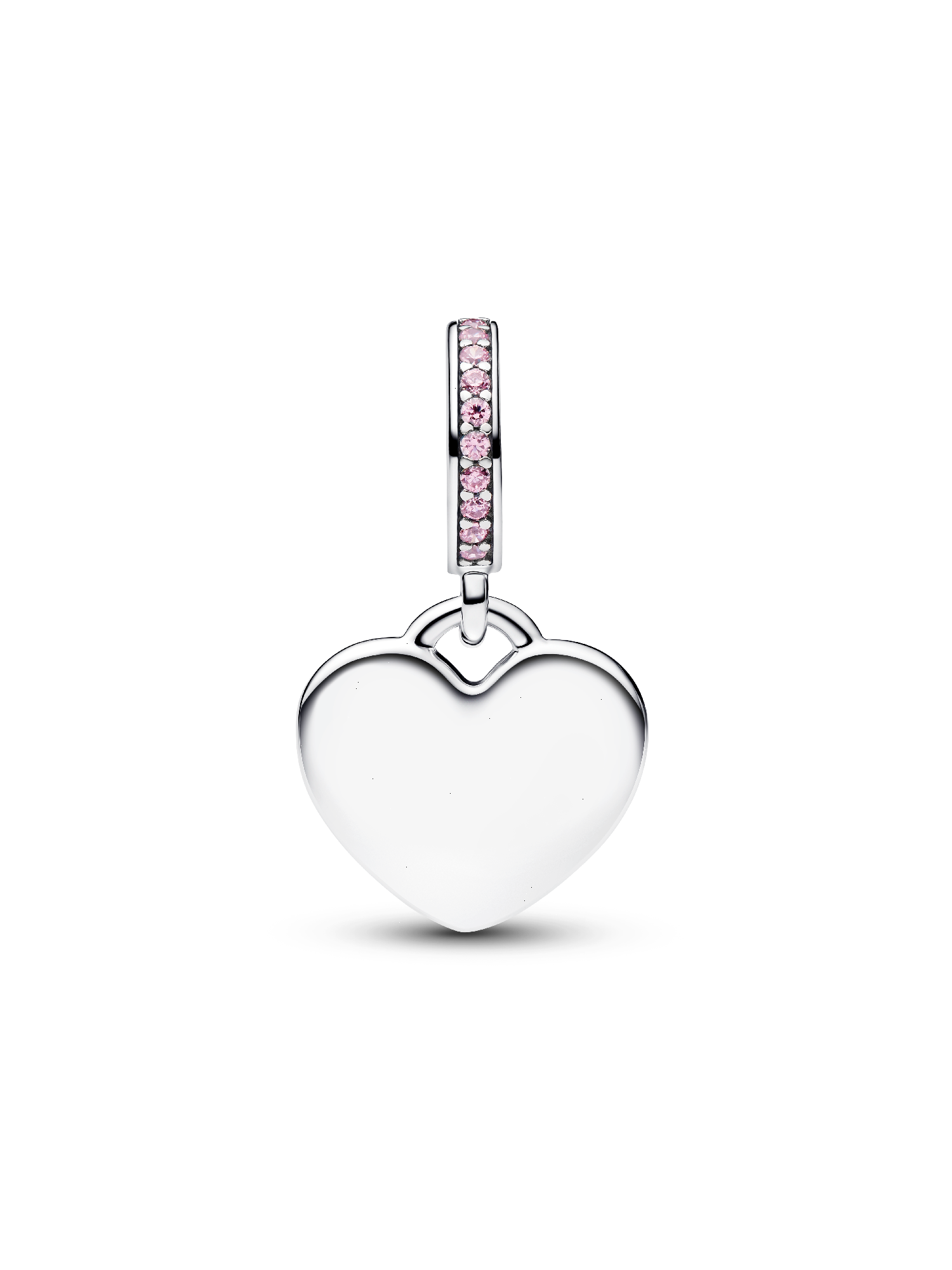 Show what's in your heart. This sterling silver, heart-shaped dangle charm is engravable and features pink cubic zirconia for a touch of sparkle. Personalize yours to make it your own.