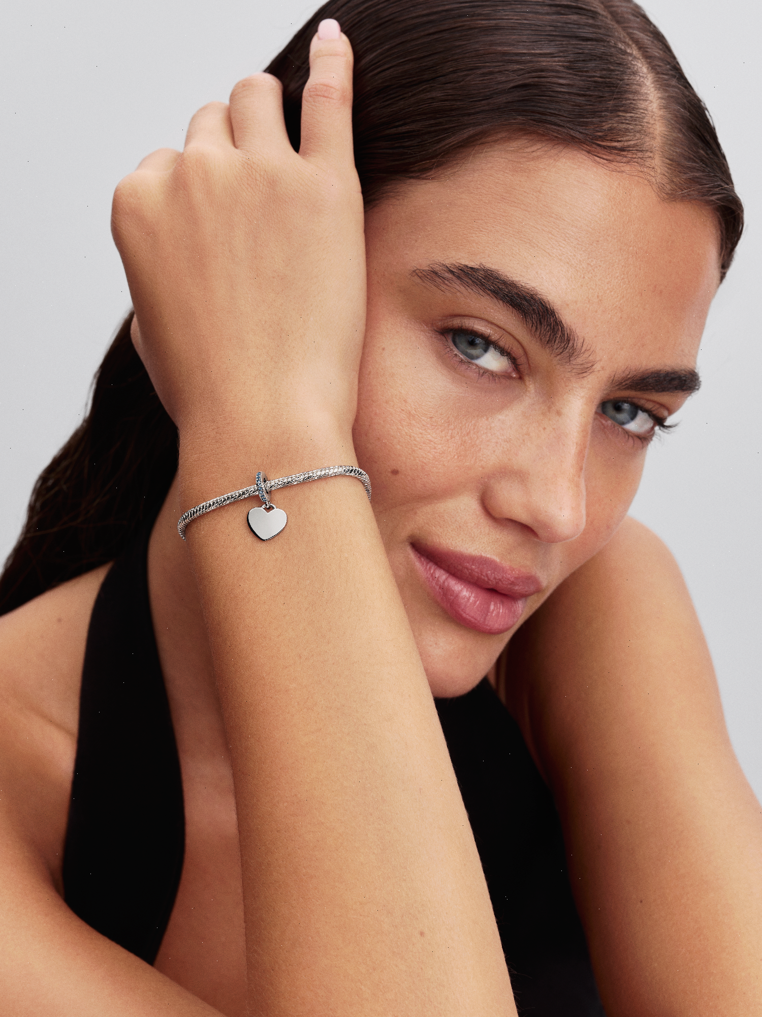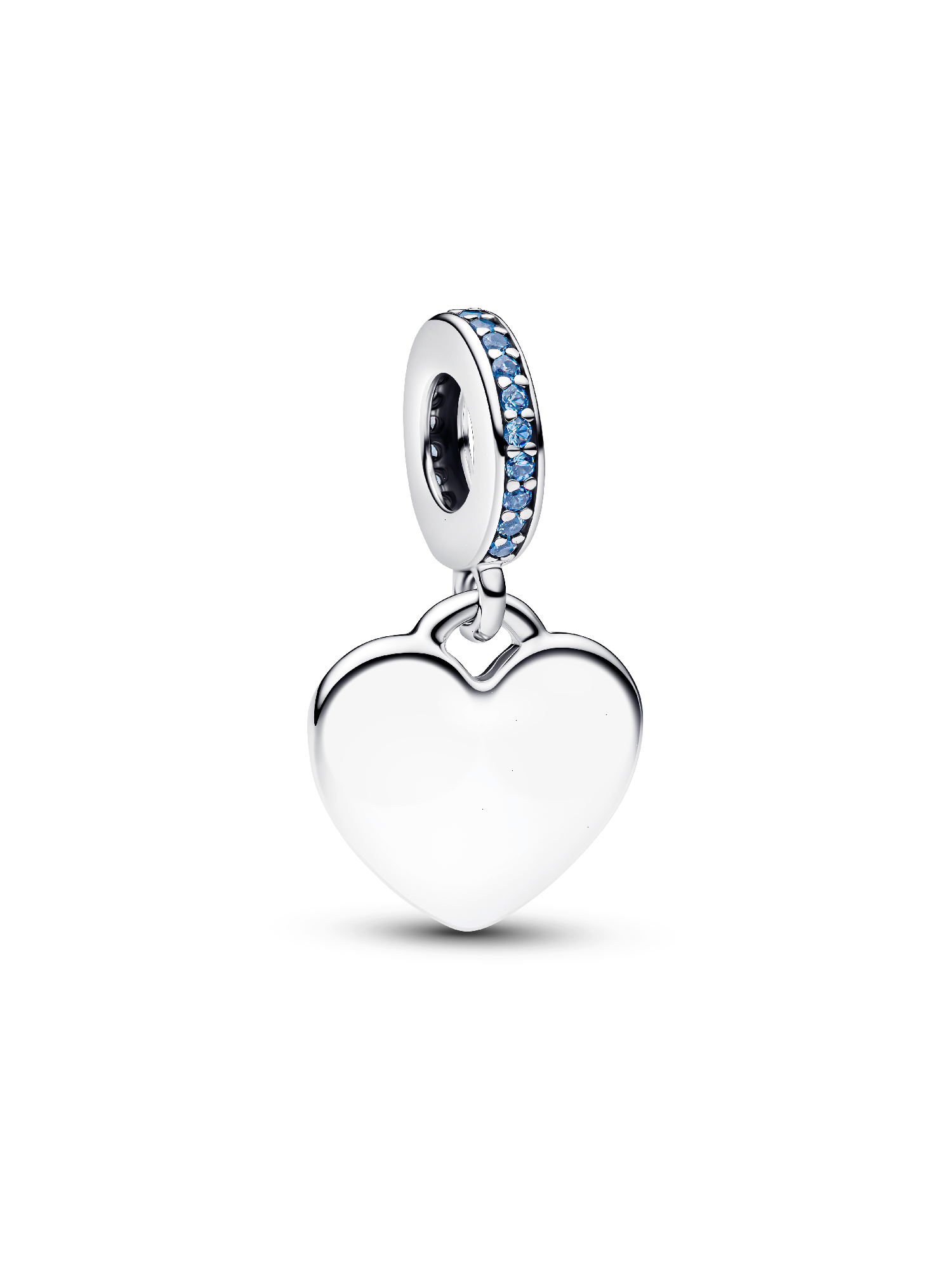 Show what's in your heart. This sterling silver, heart-shaped dangle charm is engravable and features moonlight blue cubic zirconia for a touch of sparkle. Personalize yours to make it your own.