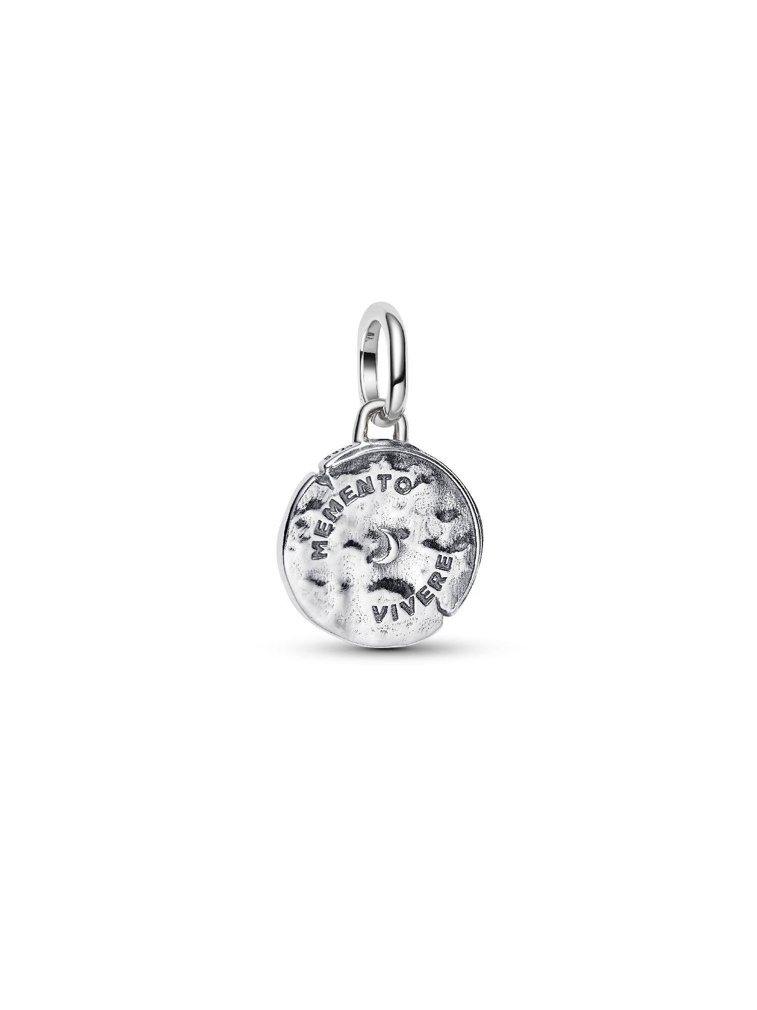 A symbol of renewal, coiled in sterling silver. Inspired by ancient coins, this powerful medallion features a flush-set clear cubic zirconia and is engraved with 'MEMENTO VIVERE' — Latin for 'REMEMBER TO LIVE'.