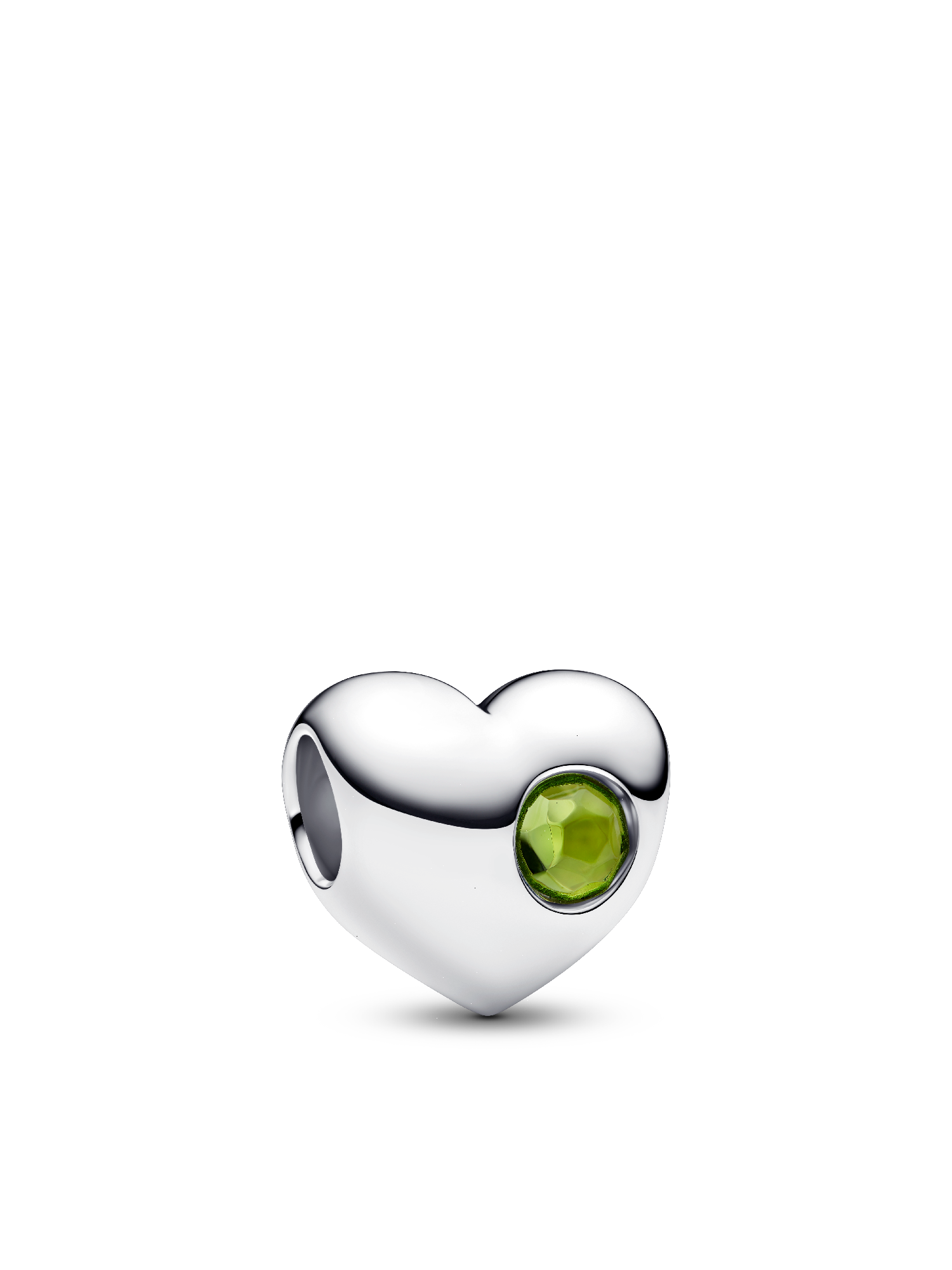 Engrave a message of love. Our sterling silver heart charm with a flush-set spring green man-made crystal is the perfect canvas for a personal note or meaningful memento.