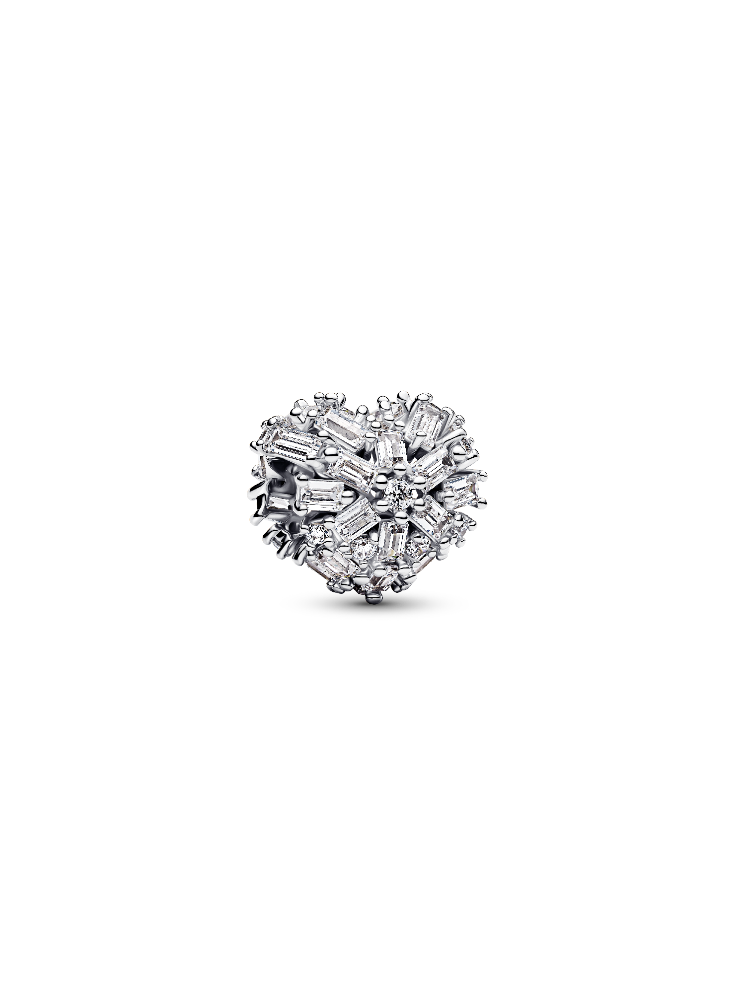 Spread love wherever you go with our heart-shaped charm. Crafted in sterling silver and embellished with clear cubic zirconia stones, it’s a charm that radiates warmth and energy.