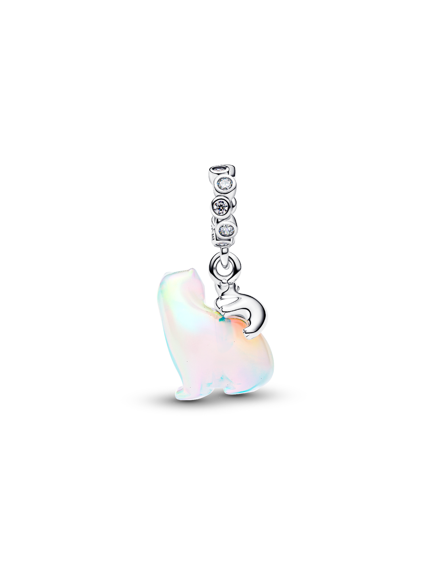 Inspired by unbreakable bonds, this sterling silver polar bear charm embodies love and connection. Crafted from aurora lab-grown opal resin and cubic zirconia, the mother cradles her cub, a symbol of deep affection.