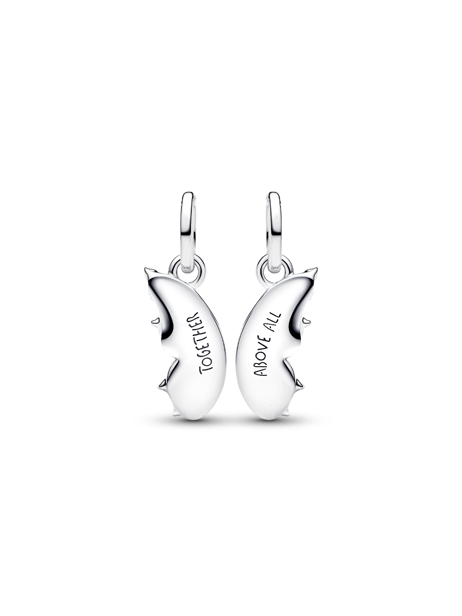 Made to share, designed to shine. This sterling silver splittable butterfly charm features sparkling cubic zirconia and shimmering blue enamel on the front, with the engraving 'TOGETHER ABOVE ALL' on the back of each.