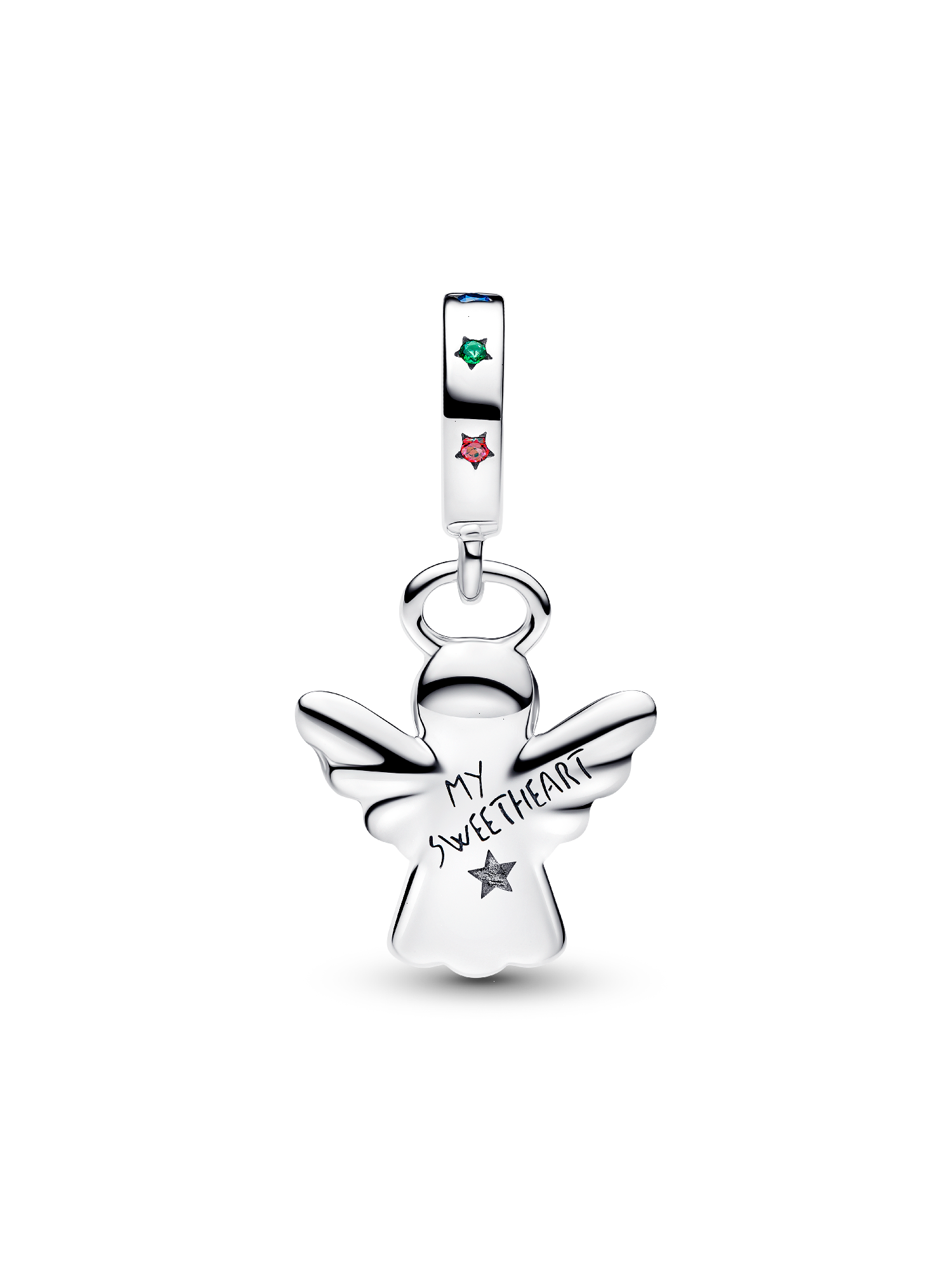Made with love and full of magic. This sterling silver gingerbread angel charm is hand-finished with colorful enamel, man-made crystals and 'MY SWEETHEART' engraved on the back. A festive favorite, sweet as can be.