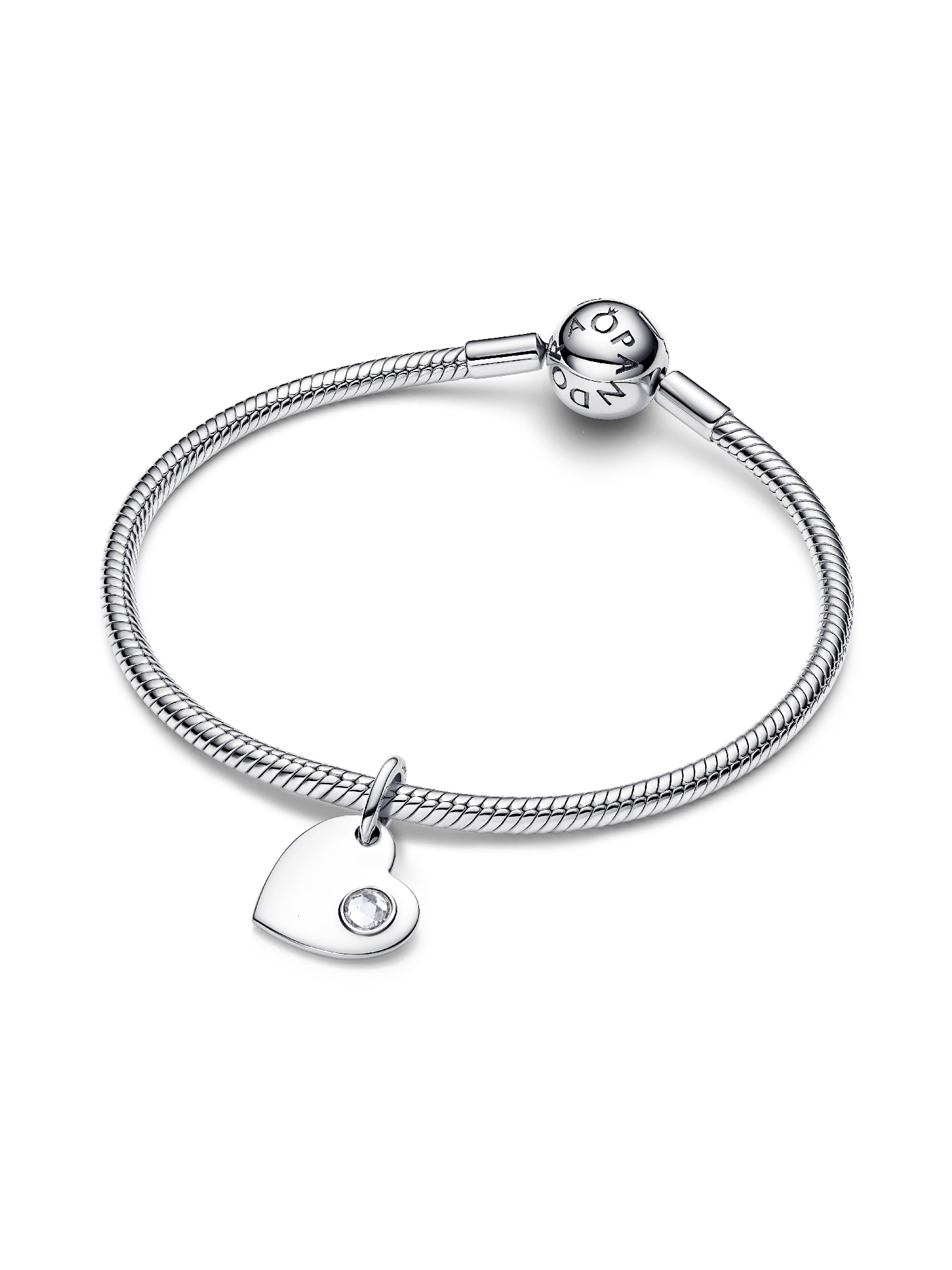 Make this sterling silver heart dangle yours. Featuring a clear cubic zirconia on one side, the other is engravable – perfect for a meaningful message.