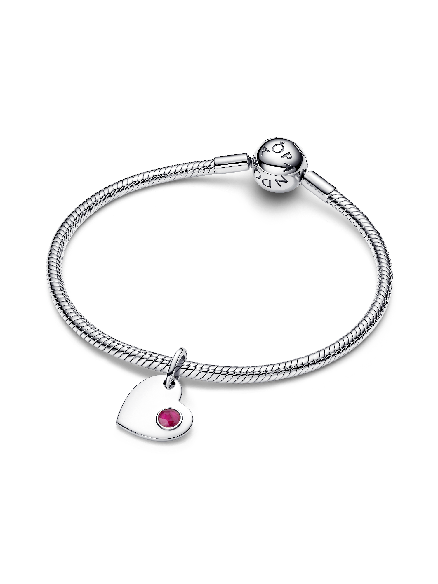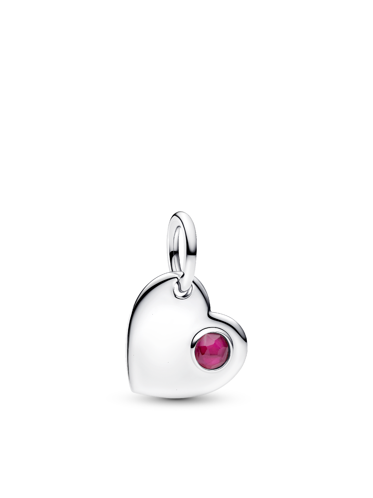 Make this sterling silver heart dangle yours. Featuring a man-made crystal on one side in true red, the other is engravable – perfect for a meaningful message.