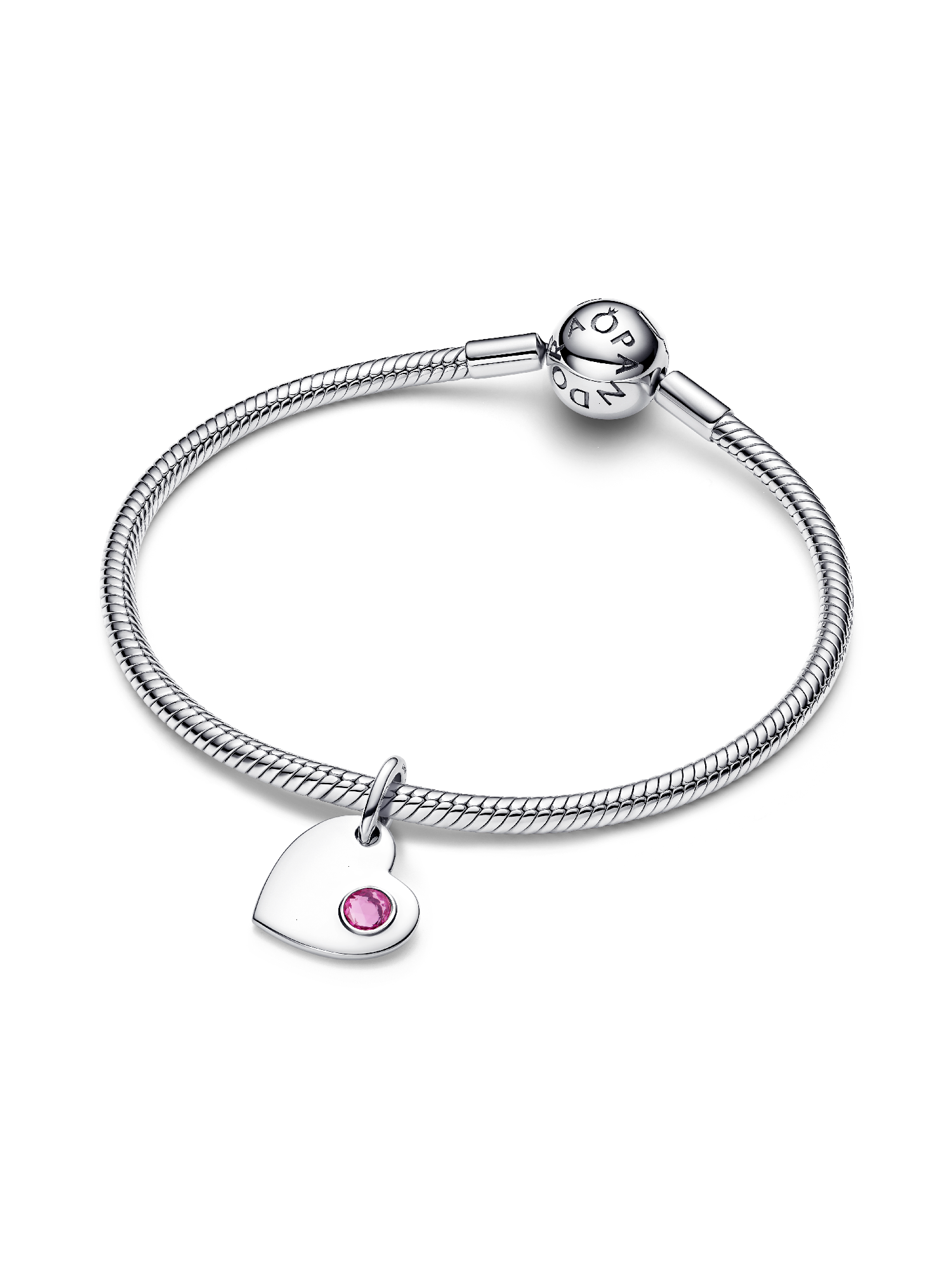Wear your heart on your sleeve, literally. This sterling silver dangle charm pairs a pink man-made crystal with an engravable back — crafted to carry your most meaningful words.