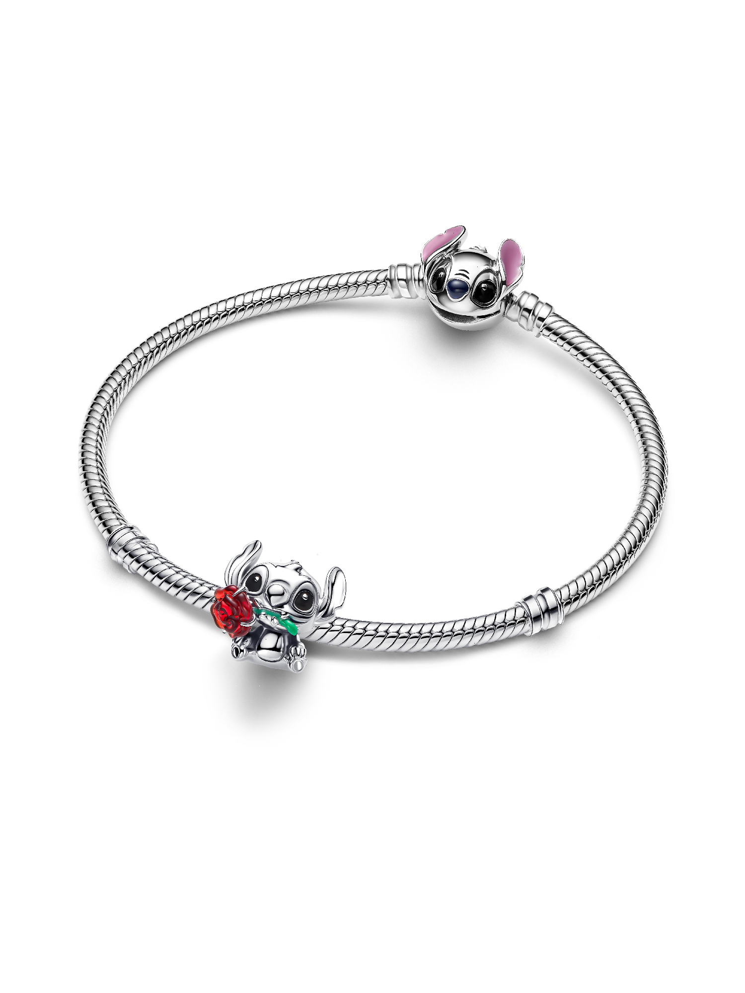 If chaos is your love language, this charm’s for you. Our sterling silver Disney’s Stitch charm features a red Murano glass rose and black and green enamel, perfectly capturing Stitch’s lovable yet mischievous spirit.