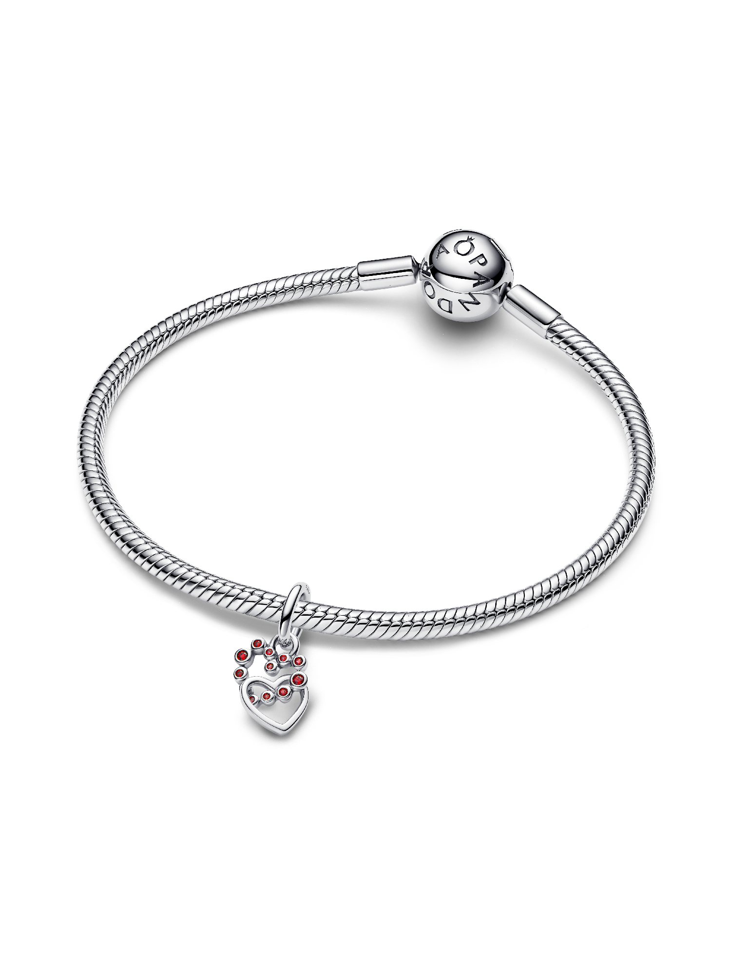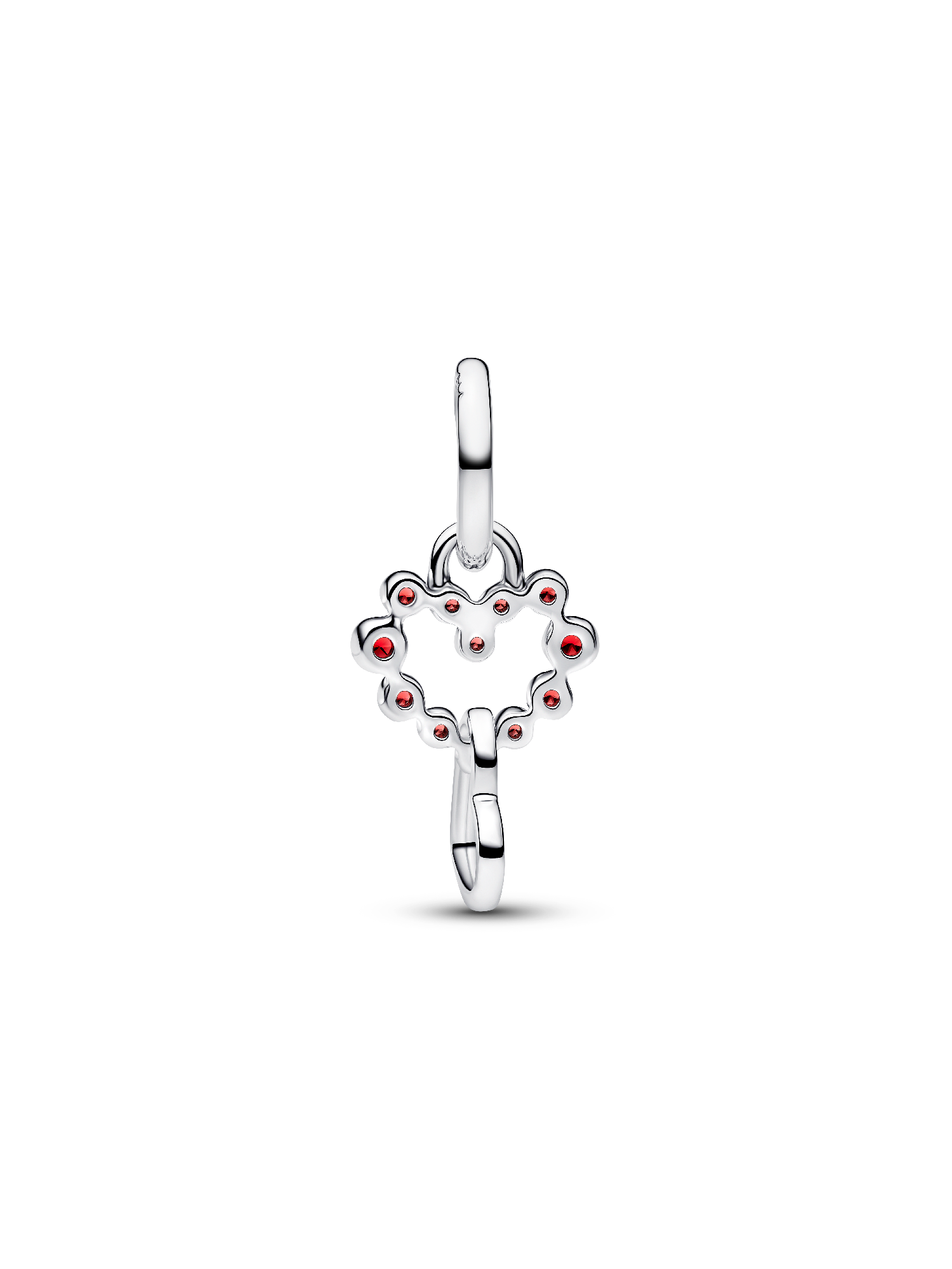 A symbol of connection and love. This sterling silver dangle features salsa red crystals set in a heart shape, with a second heart that moves freely to catch the light beautifully.