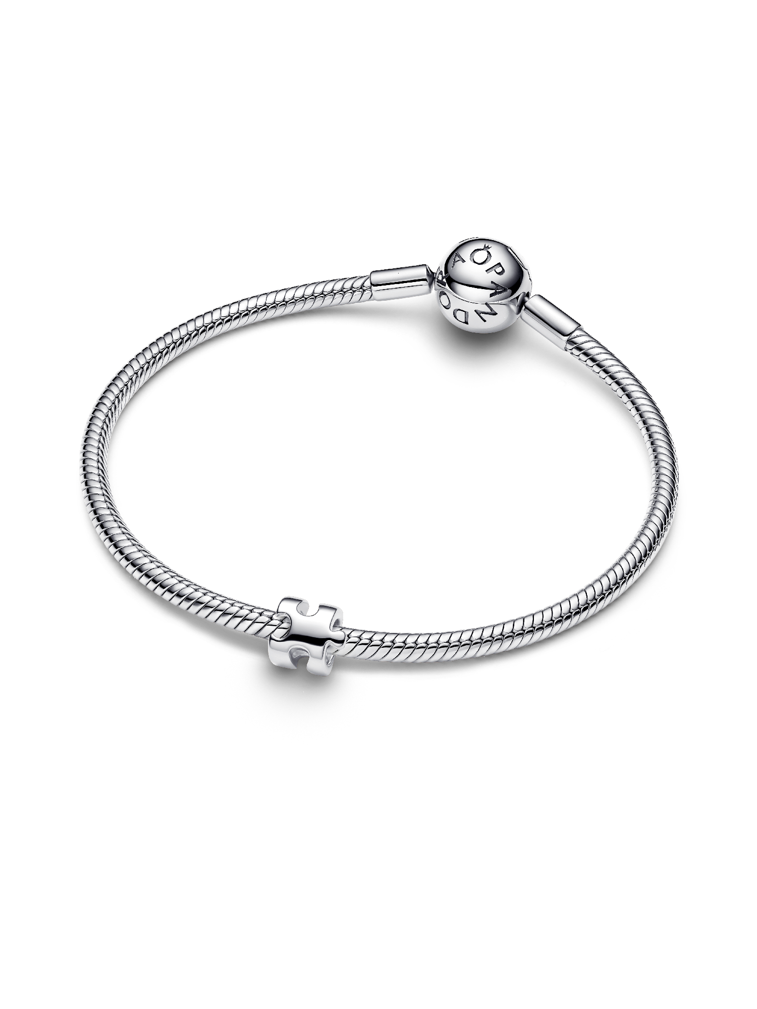 FIND YOUR PERFECT FIT Our sterling silver mini charm features a polished puzzle piece, subtly shaped to echo the beauty of connections and the pieces that make you, you.