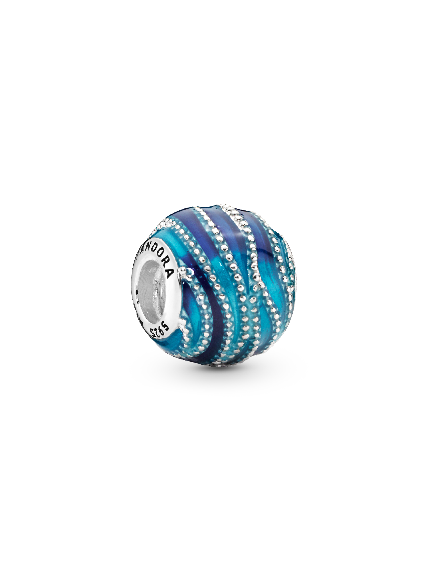 Channel the healing power of water with this ball charm. Taking its cue from ripples of water, the sterling silver design features hand-applied shaded blue enamel. Beaded lines along its surface create a wave-like effect that makes it a refreshing addition to your Pandora Moments bracelet. You can also wear it on a necklace chain.