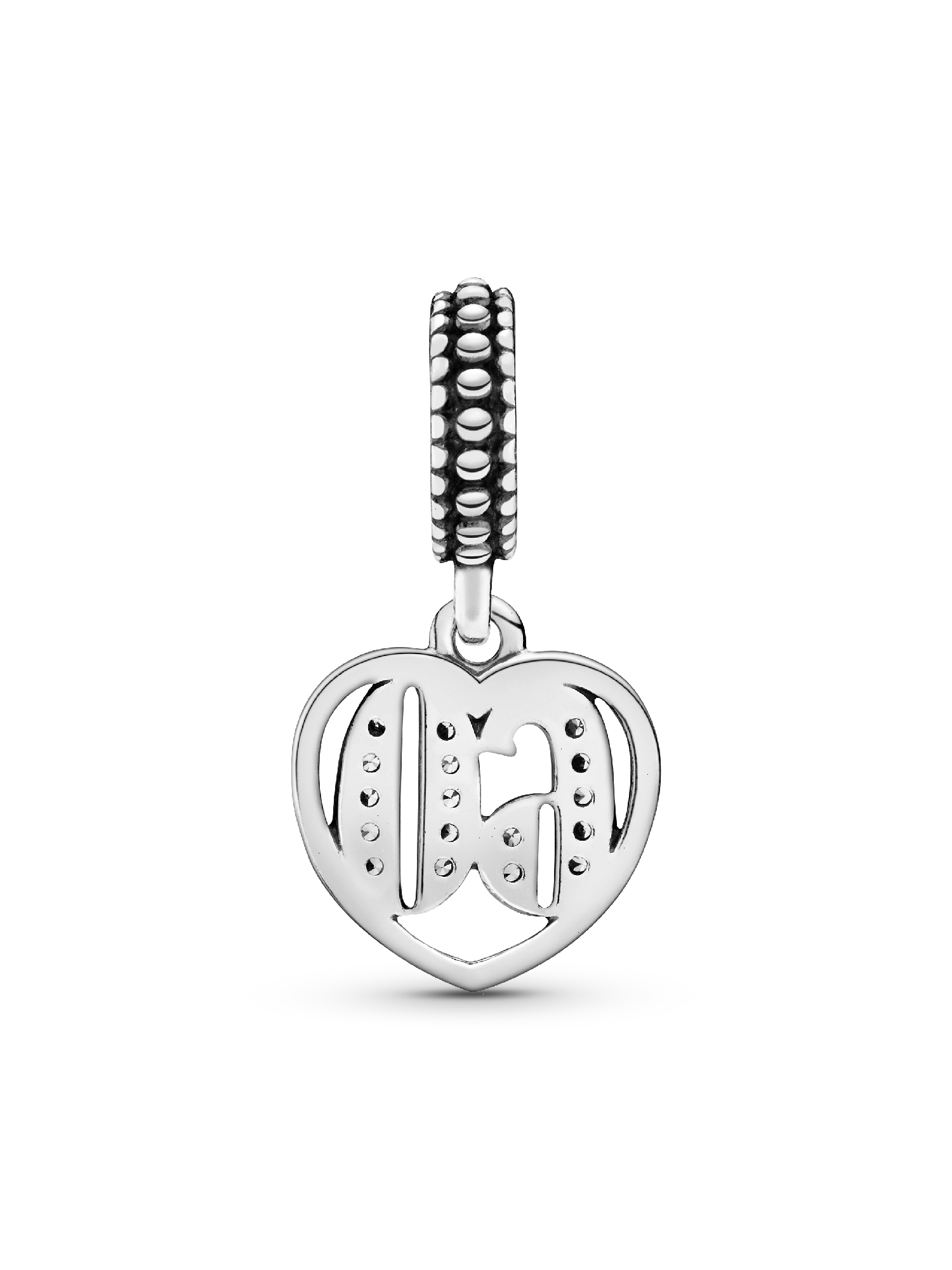 Detailed with the number 60, our celebratory dangle charm in sterling silver is set with glittering cubic zirconia for subtle sparkle. The heart-shaped style is ideal for commemorating a 60th birthday or anniversary – or whatever the number means to you. Thread it on a Pandora Moments bracelet or wear it as a pendant on a necklace chain.