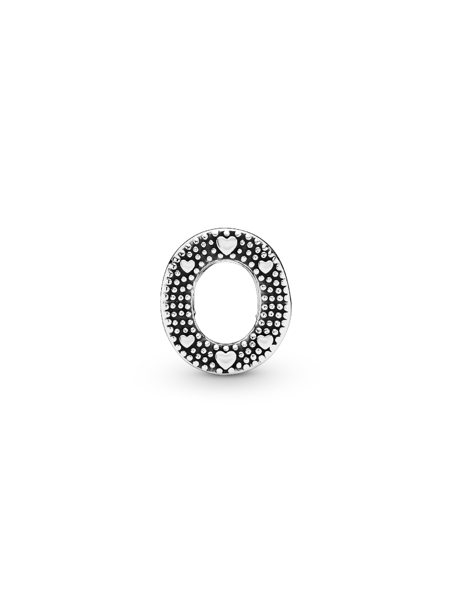 Tell your style story through our letter charms that let you spell out the words that mean the most to you. Monogram your Pandora Moments charm bracelet with important initials or create a personal message with the letter O. The reversible sterling silver charm is polished on the front and feature raised hearts and beads on the back. Add the letter O to your charm collection or gift it to someone that's got a special connection to the letter.