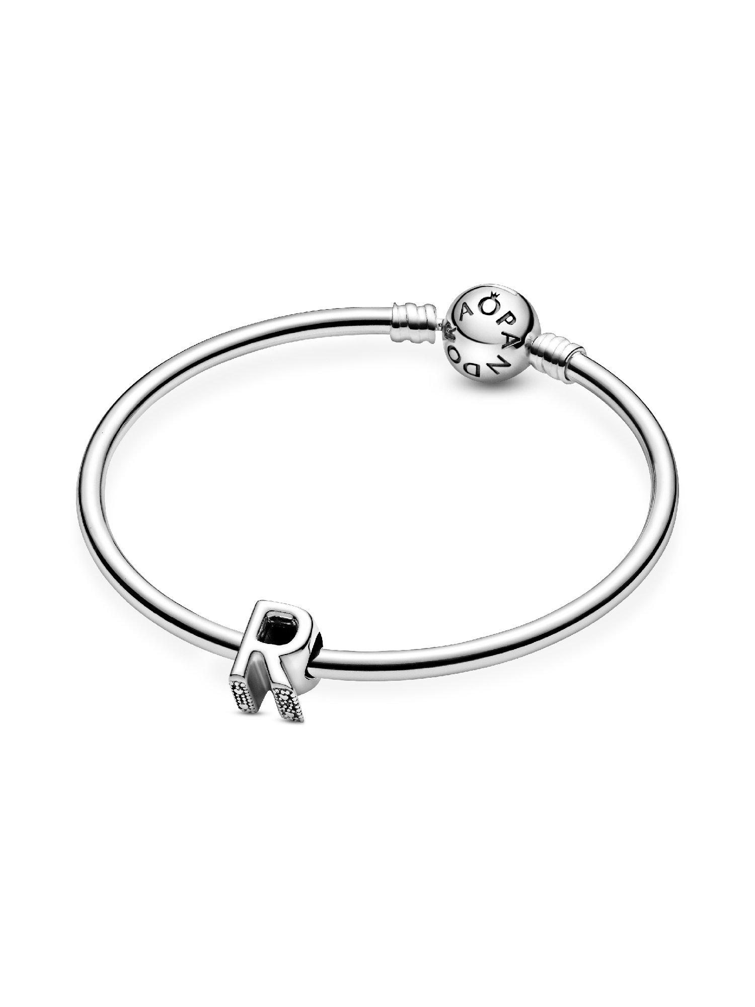 Tell your style story through our letter charms that let you spell out the words that mean the most to you. Monogram your Pandora Moments charm bracelet with important initials or create a personal message with the letter R. The reversible sterling silver charm is polished on the front and feature raised hearts and beads on the back. Add the letter R to your charm collection or gift it to someone that's got a special connection to the letter.