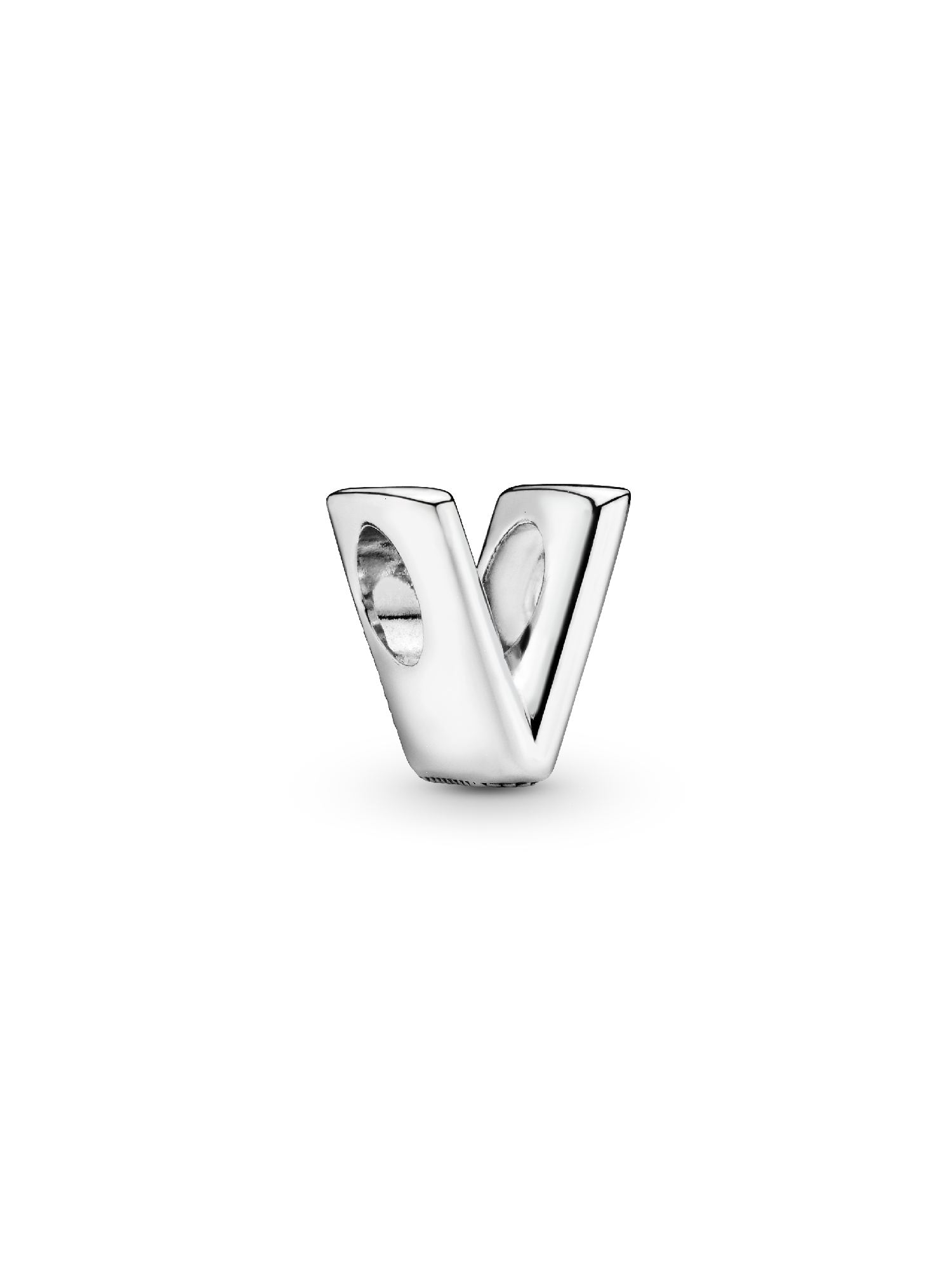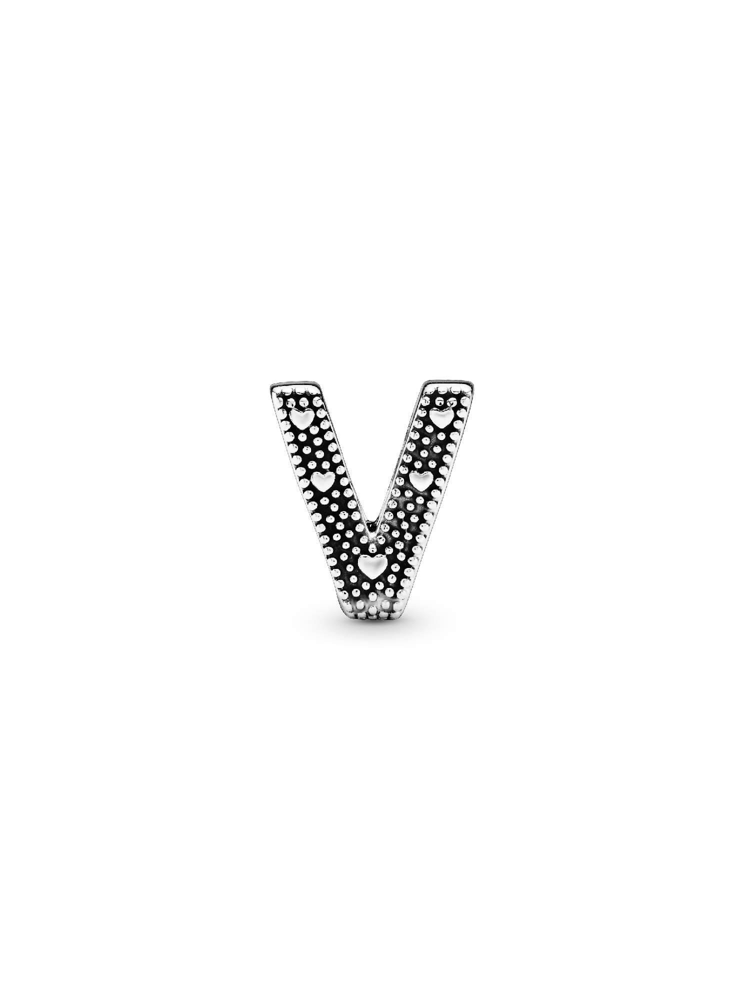 Tell your style story through our letter charms that let you spell out the words that mean the most to you. Monogram your Pandora Moments charm bracelet with important initials or create a personal message with the letter V. The reversible sterling silver charm is polished on the front and feature raised hearts and beads on the back. Add the letter V to your charm collection or gift it to someone that's got a special connection to the letter.