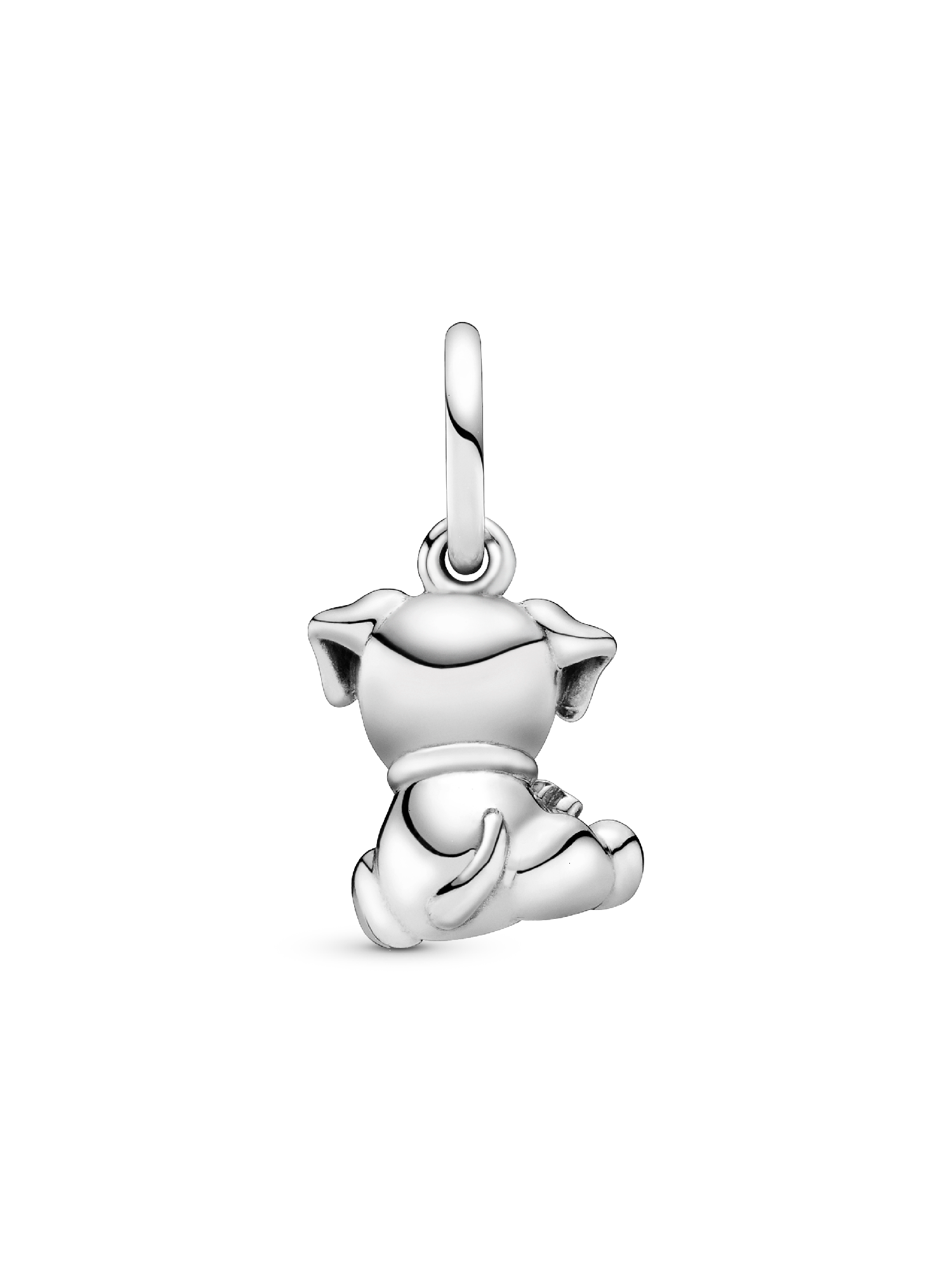 Make your favorite pet or animal a part of your style story with our Labrador dog charm. The adorable sterling silver puppy wears a dangling bone-shaped collar detailed with hand-applied black enamel and its paws are embossed with hearts. Wear the charm as a heartfelt reminder of your four-legged best friend on your favorite Pandora Moments bracelets and bangles.
