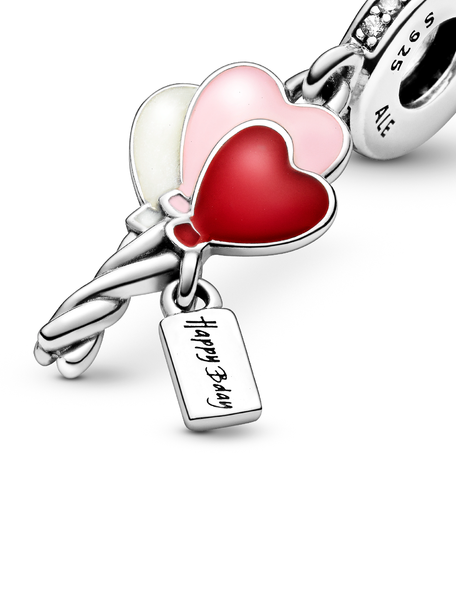 Wish someone special a happy birthday with our celebratory heart dangle charm hand-finished in sterling silver. It's been carefully shaped into balloons, decorated with hand-applied enamel and trimmed with an engraved "Happy Bday" greeting. The bail is lined with cubic zirconia for extra birthday sparkle. Wear as a reminder of your special day or gift it to someone who is celebrating their birthday.