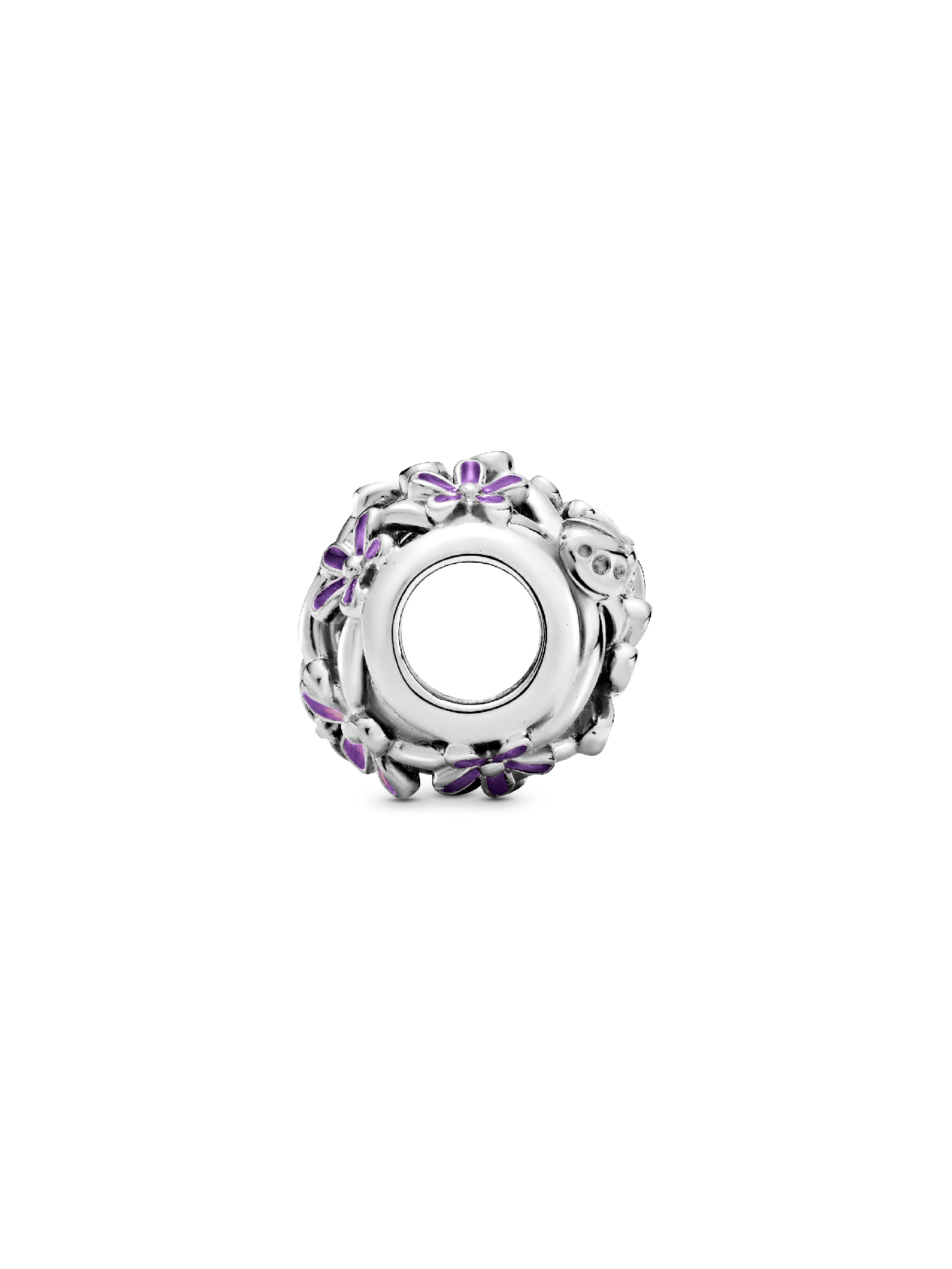 Brighten up your look with the Openwork Purple Daisy Charm. Hand-finished in sterling silver, this intricate openwork flower charm features delicate daisies covered in hand-applied lavender and pink enamel, as well as polished ladybird and bee details. A celebration of spring and new beginnings, this dainty charm represents hope, freedom, community and diversity. Wear it to tap into spring's energy and sweetness every day, no matter what the season.