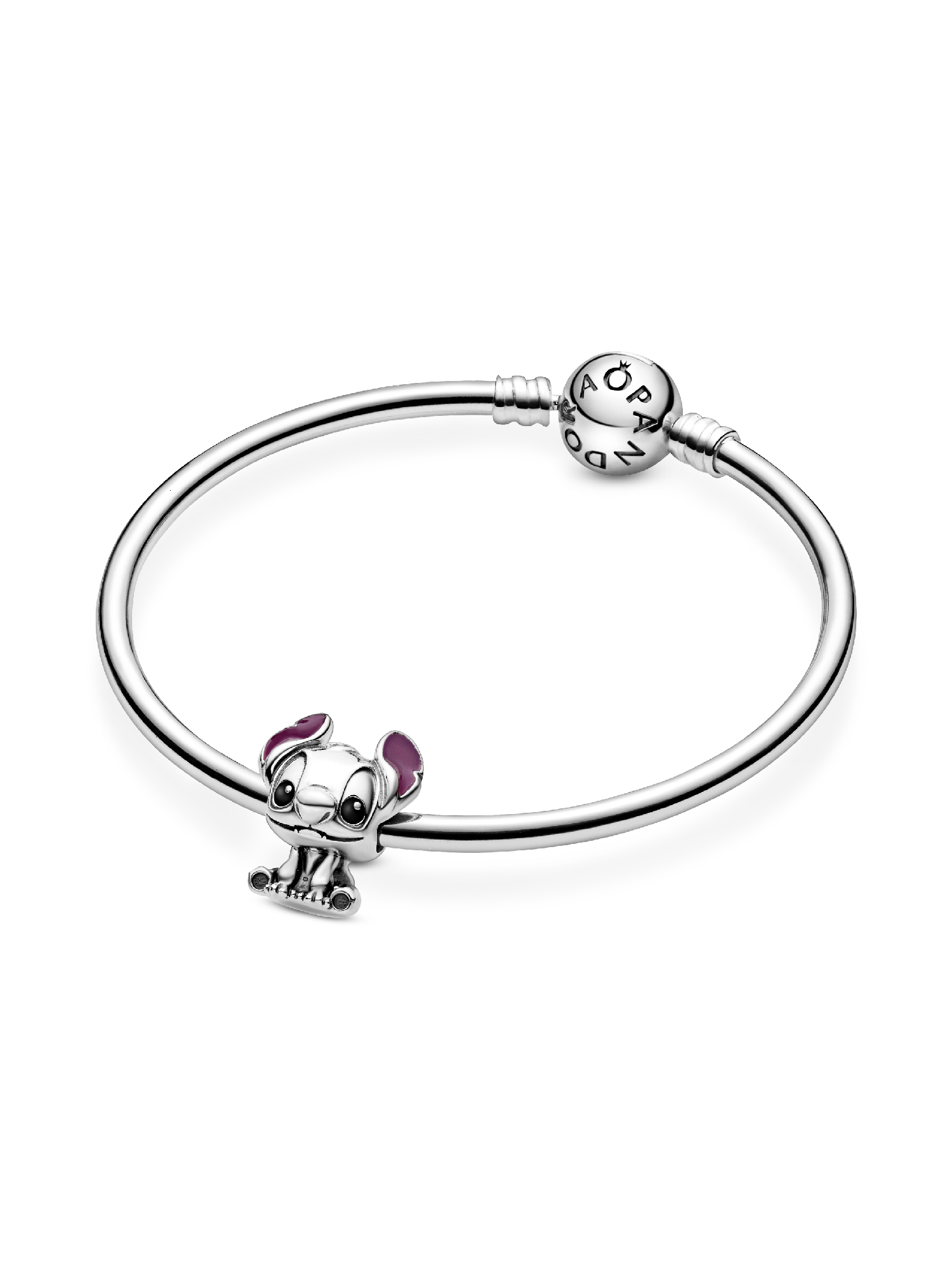 Celebrate the love for your 'ohana' with this hand-finished Disney Stitch charm from the Disney x Pandora Favorites series. Created in collaboration with Disney's in-house toy design team, the creature's design is centered on his enlarged head and smaller body that highlights his loveable expression. The Stitch sterling silver charm features hand-applied purple enamel that highlights the contour of his ears and black enamel on his eyes. Wear it with your favorite Disney x Pandora charms to create your own style adventure.