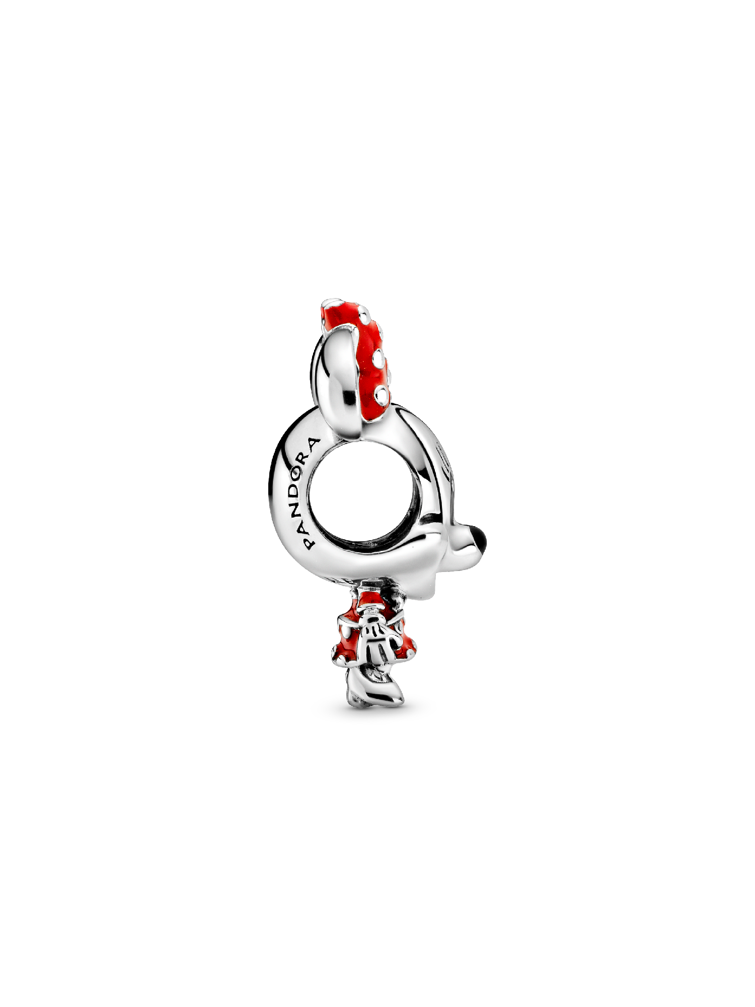 Collect one of your childhood icons with this hand-finished Disney Minnie Mouse charm from the Disney x Pandora Favorites series. Created in collaboration with Disney's in-house toy design team, the mouse’s design is centered on her enlarged ears and head and smaller body that highlights her happy face. The Minnie Mouse sterling silver charm features her signature red outfit and black hand-applied enamel eyes. Wear it with your favorite Disney x Pandora charms to create your own style adventure.
