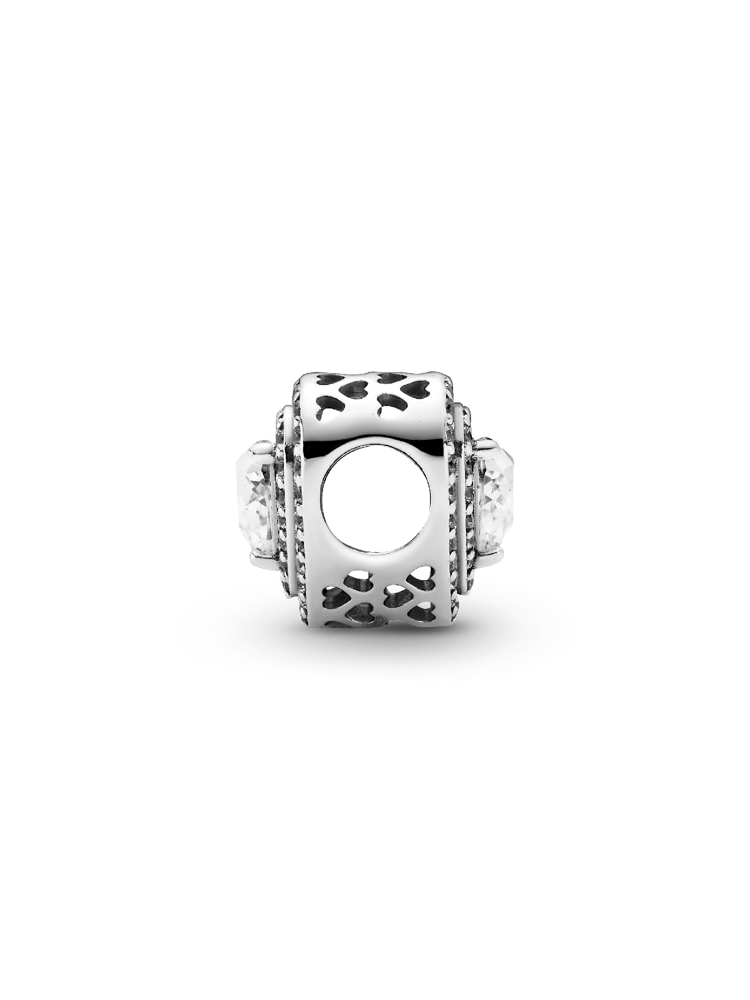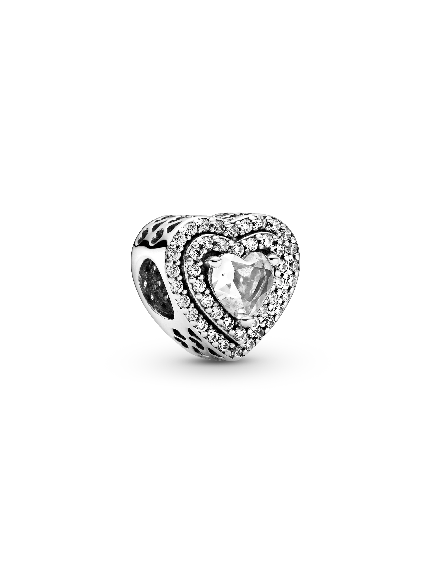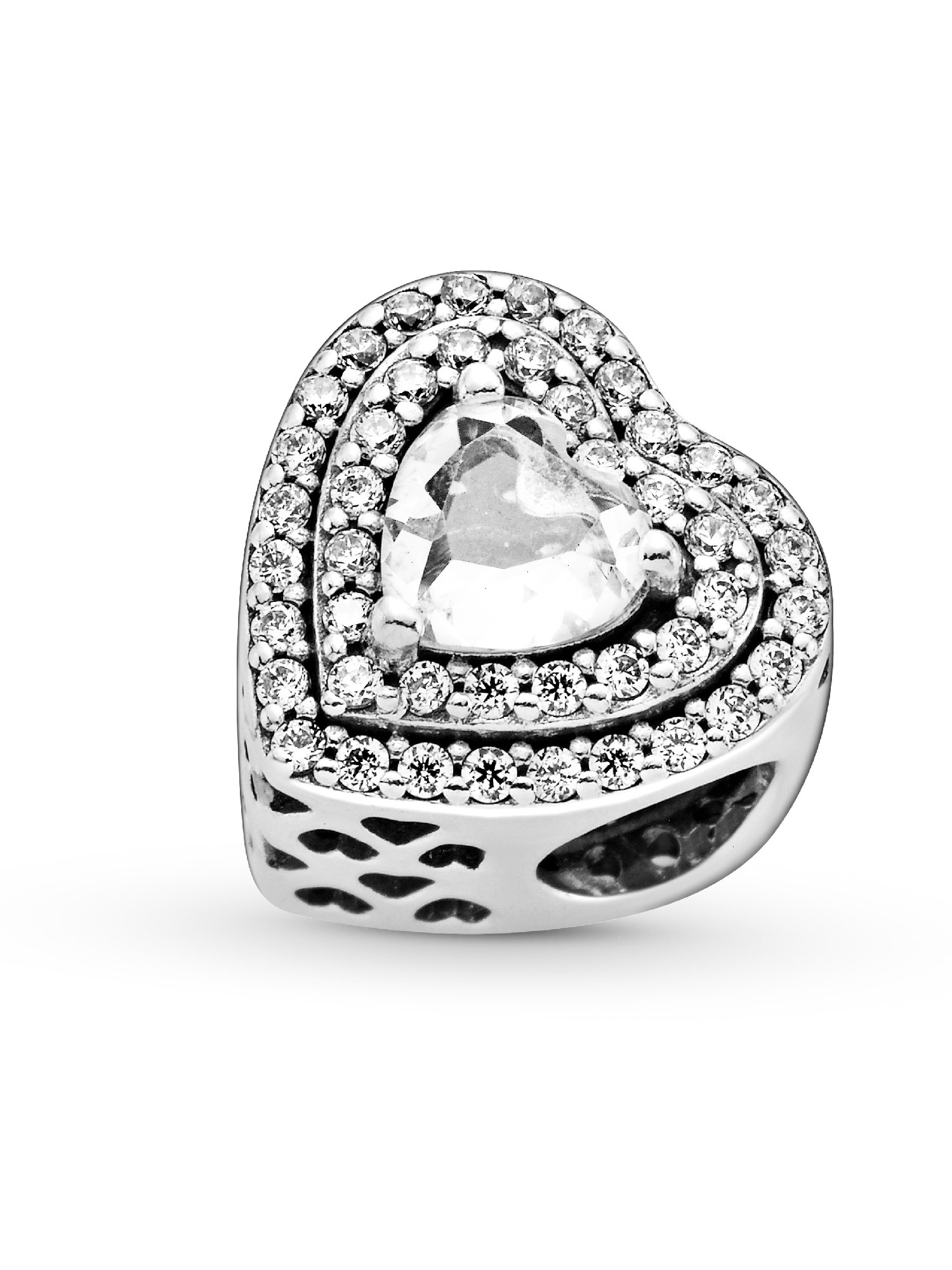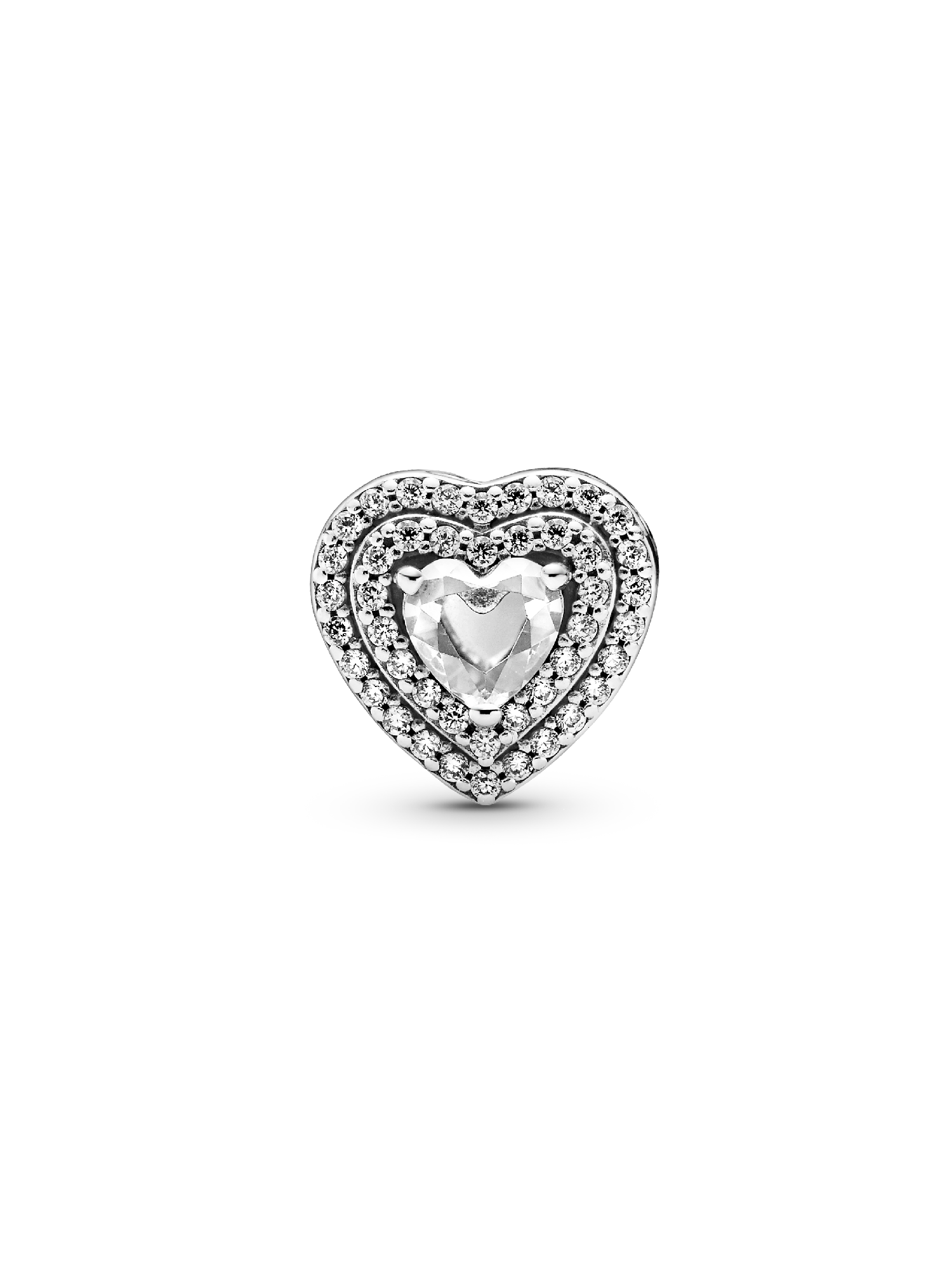 Spread the love with the Sparkling Leveled Hearts Charm. Hand-finished in sterling silver, this piece is inspired by key design features from the Pandora Timeless collection. This charm features an elevated heart-shaped stone at the center outlined by two rows of clear stones. A cut-out heart pattern features on the sides. Style this piece on your go-to Pandora Moments bracelet with simple charms in sterling silver to make a sparkling statement.