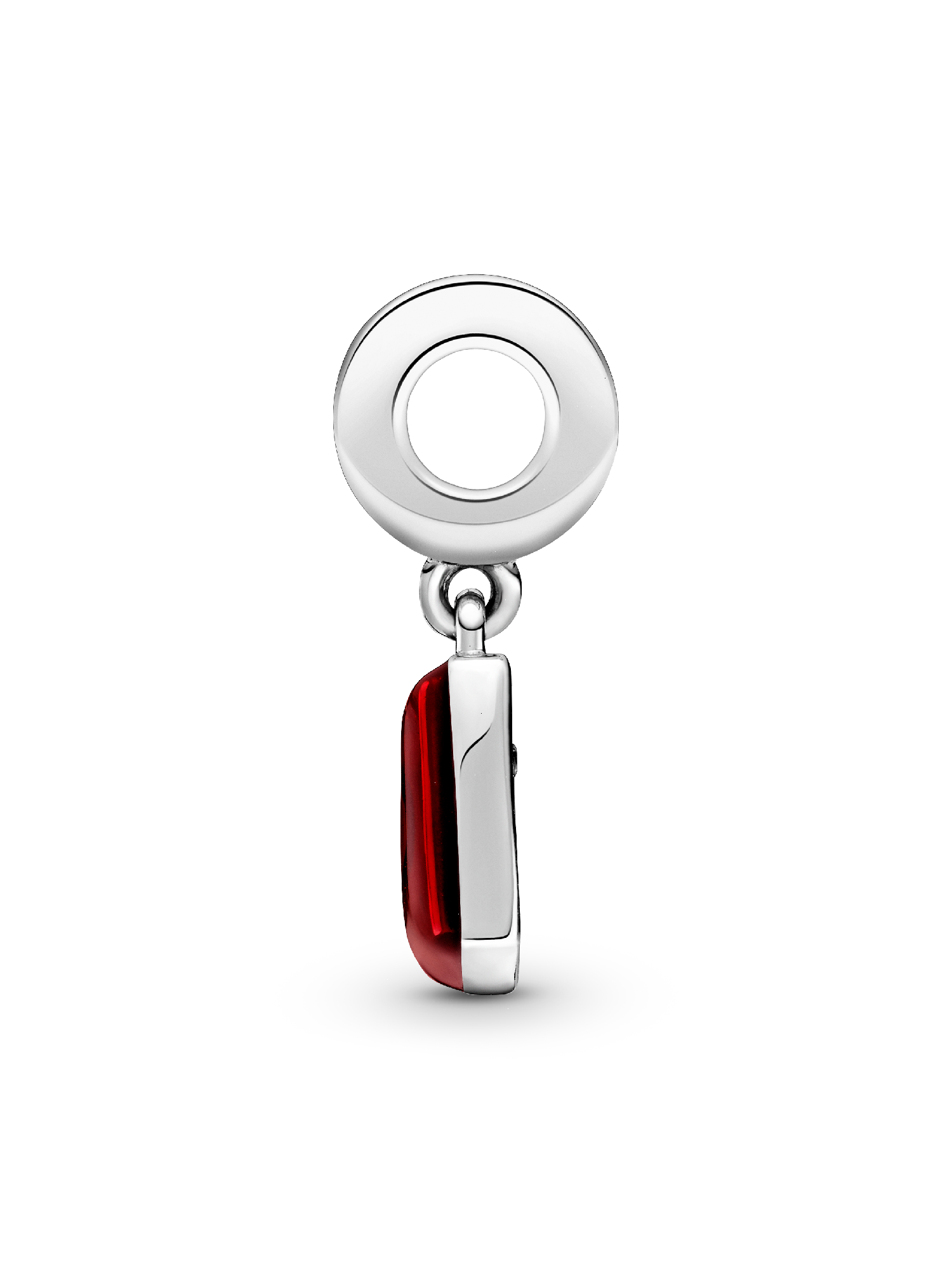Wear a symbol of good fortune with the Mahjong Dangle Charm. Hand-finished in sterling silver, this design includes the Chinese character for “get rich” in hand-applied red enamel with a sparkling stone on the front. The back is decorated in hand-applied transparent red enamel with the Pandora crown O monogram and logo shining through. The bail is embellished with clear stones. Pair with other lucky charms on your bracelet to carry positive vibes around with you.