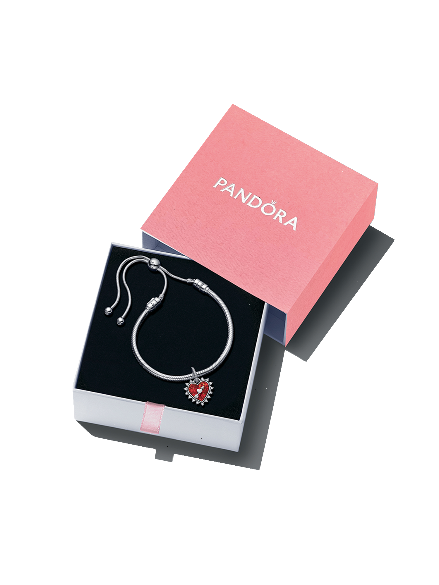 Let Cupid’s arrow guide you to the perfect gift set. Styled on our iconic sterling silver slider bracelet, a dazzling heart-shaped charm shines irresistibly in red lab-created opal. The center features a heart-shaped dial with a spinning arrow, pointing you in the direction of love. Follow your heart. Be love.