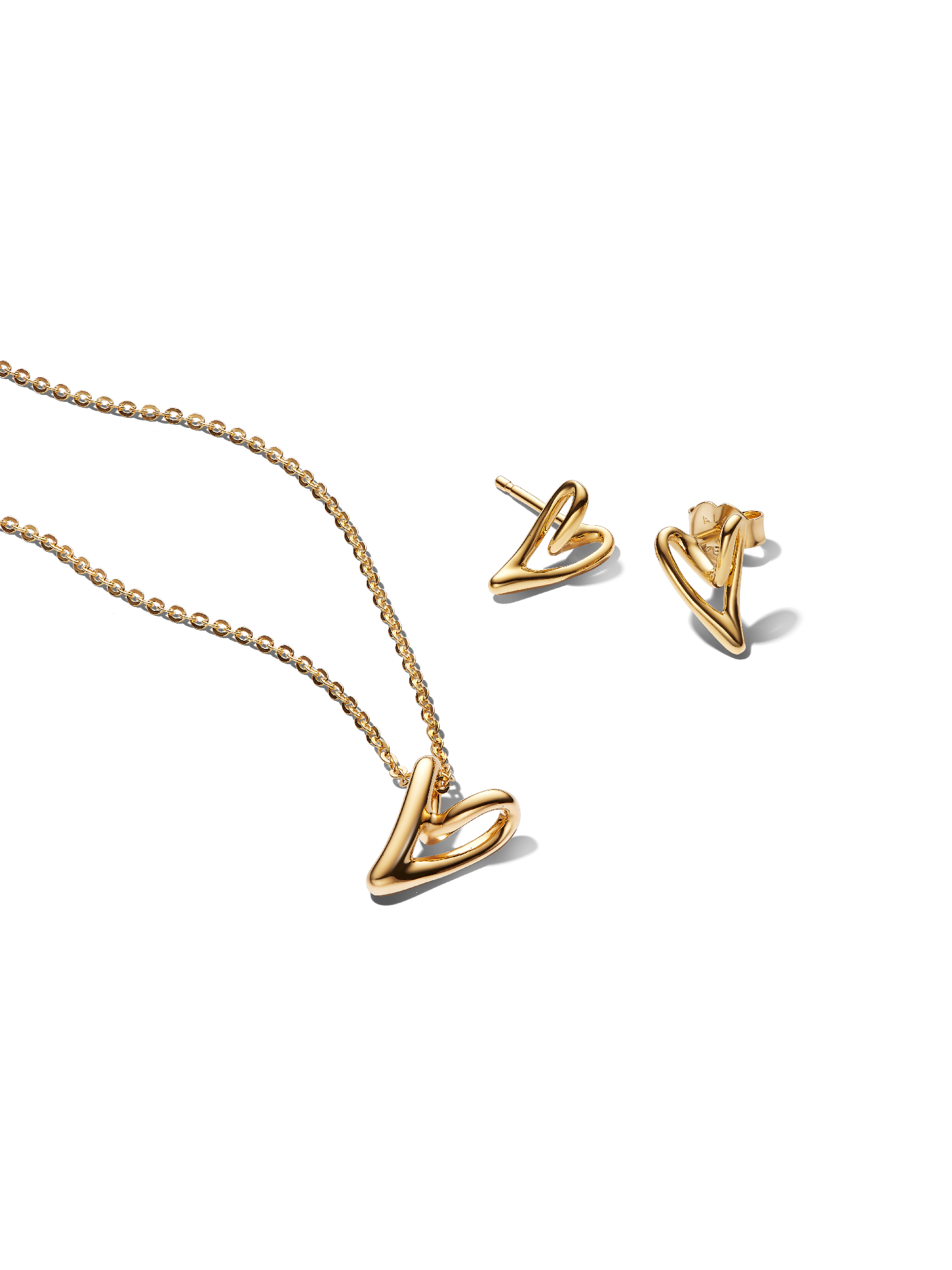 Love flows freely. Organic heart hoops and a 14k gold plated pendant bring effortless elegance to everyday style or special occasions.