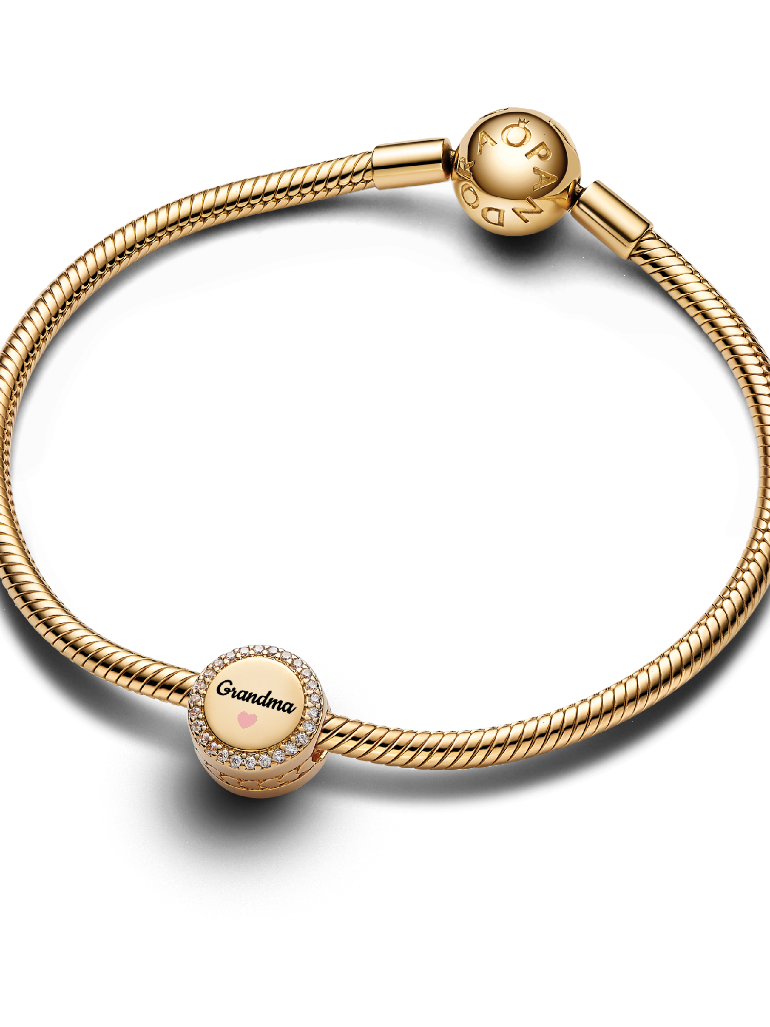 Celebrate Grandma’s love and wisdom with this exquisite 14k gold-plated Engravable Grandma Charm. A shimmering row of pavé cubic zirconia frames the "Grandma" engraving, complete with a pink heart for a tender touch. The engravable back provides space for a personal message, ensuring this charm is both elegant and sentimental.