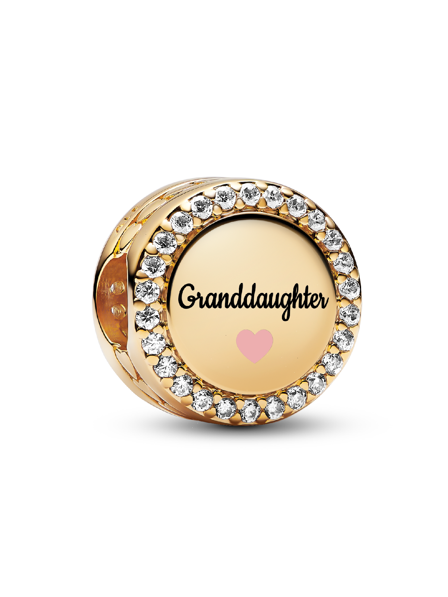Honor your cherished granddaughter with this elegant 14k gold-plated Engravable Granddaughter Charm. Adorned with sparkling pavé cubic zirconia, it’s engraved with "Granddaughter" and a delicate pink heart for a touch of warmth. The engravable reverse side lets you add a personal note, creating a timeless memento she’ll treasure forever.